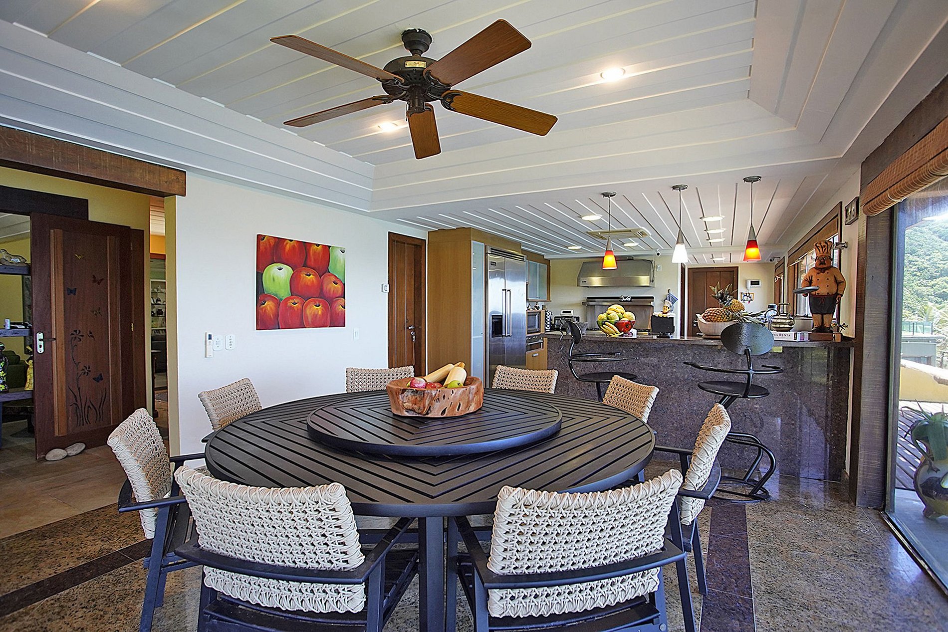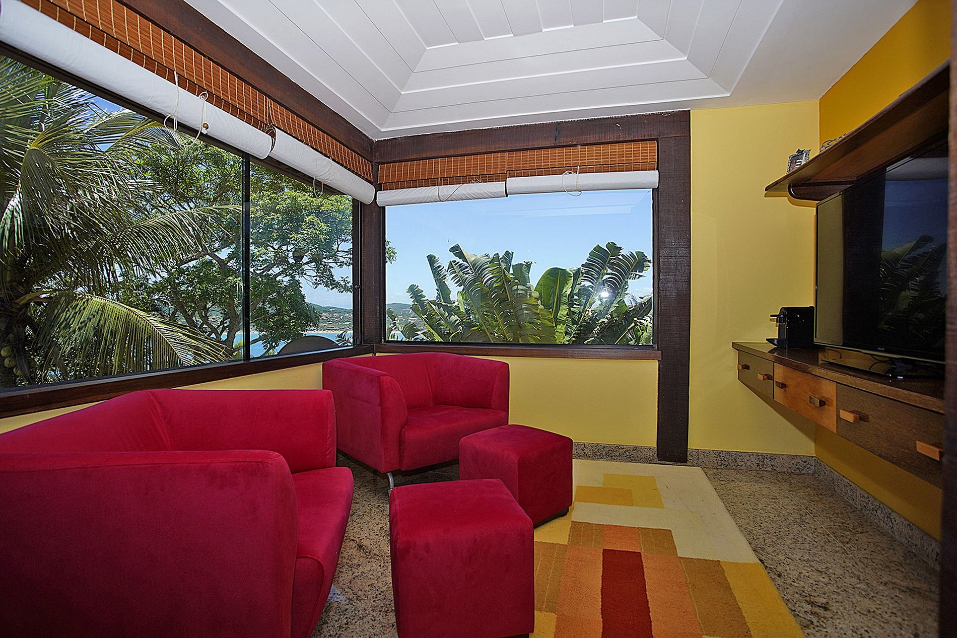 The villa was decorated in a Brazilian style, colorful, with traditional details and modern comfort by Emery de Lima Fata. Most of the walls in the house are glass. Wherever you are, you can see the sea.