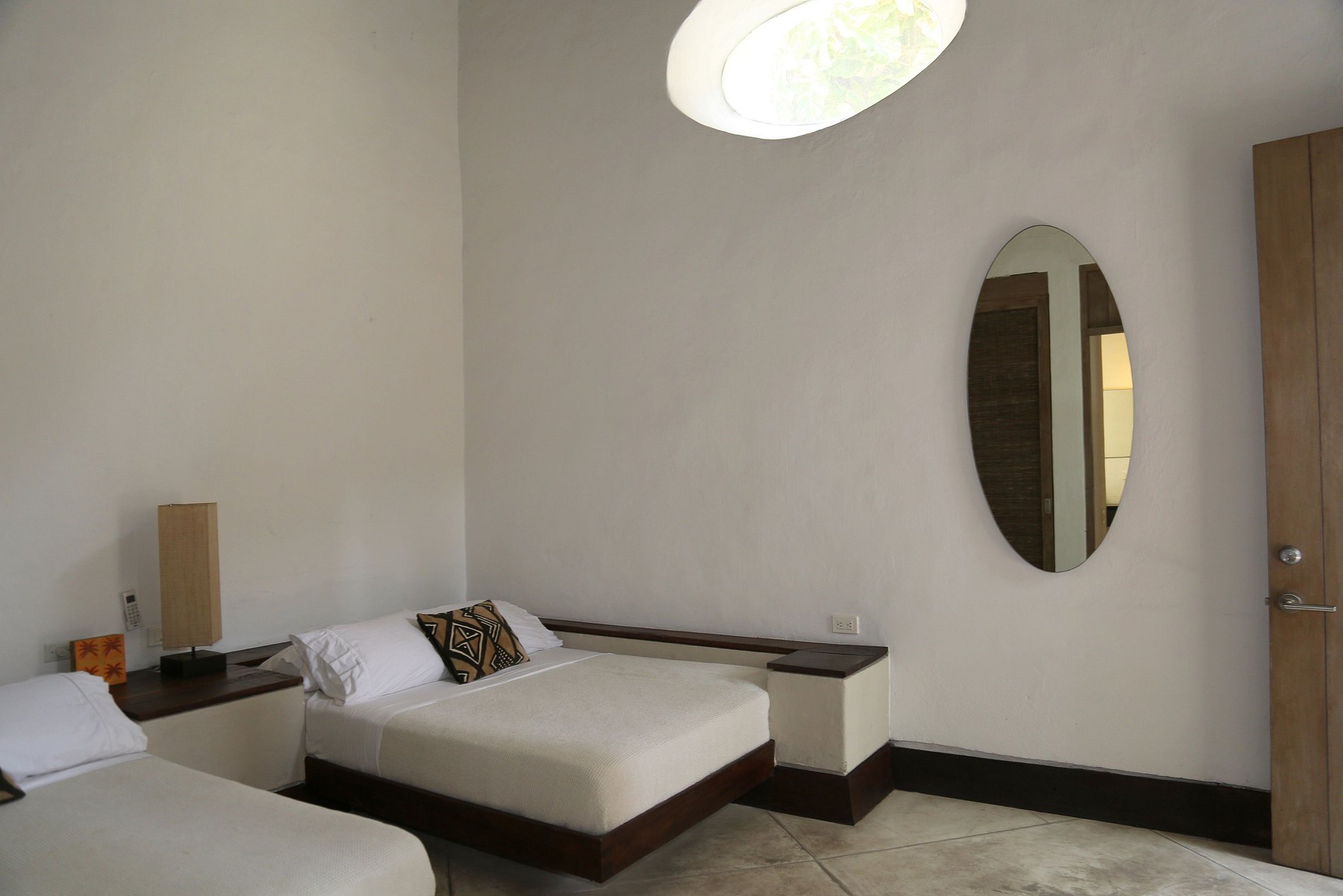 On the second floor, you will find spacious air-conditioned rooms with luxury finish bathrooms. One has a majestic view of the Cartagenero landscape and its historic streets. The balcony connects to the living room and two of the bedrooms.