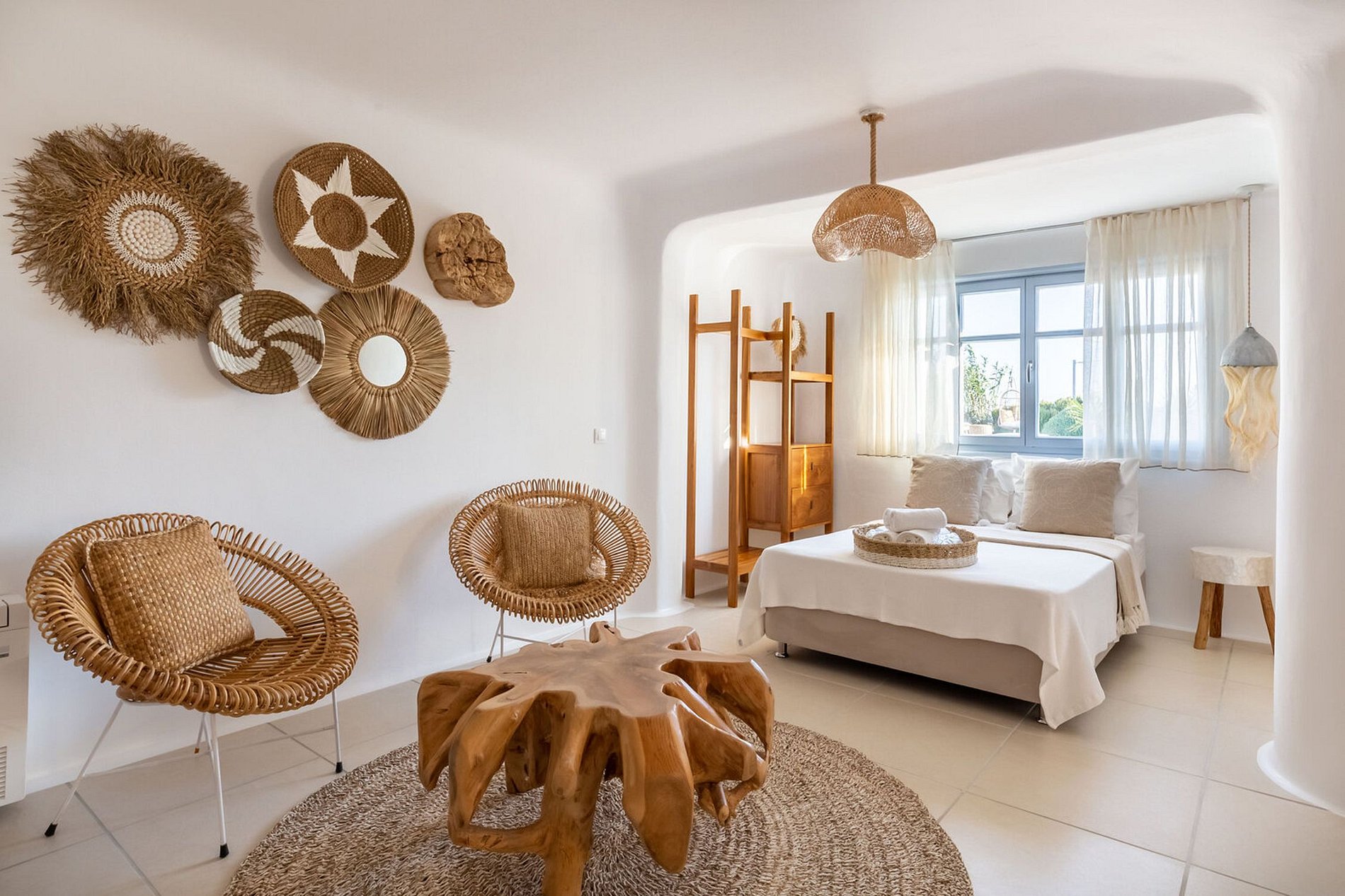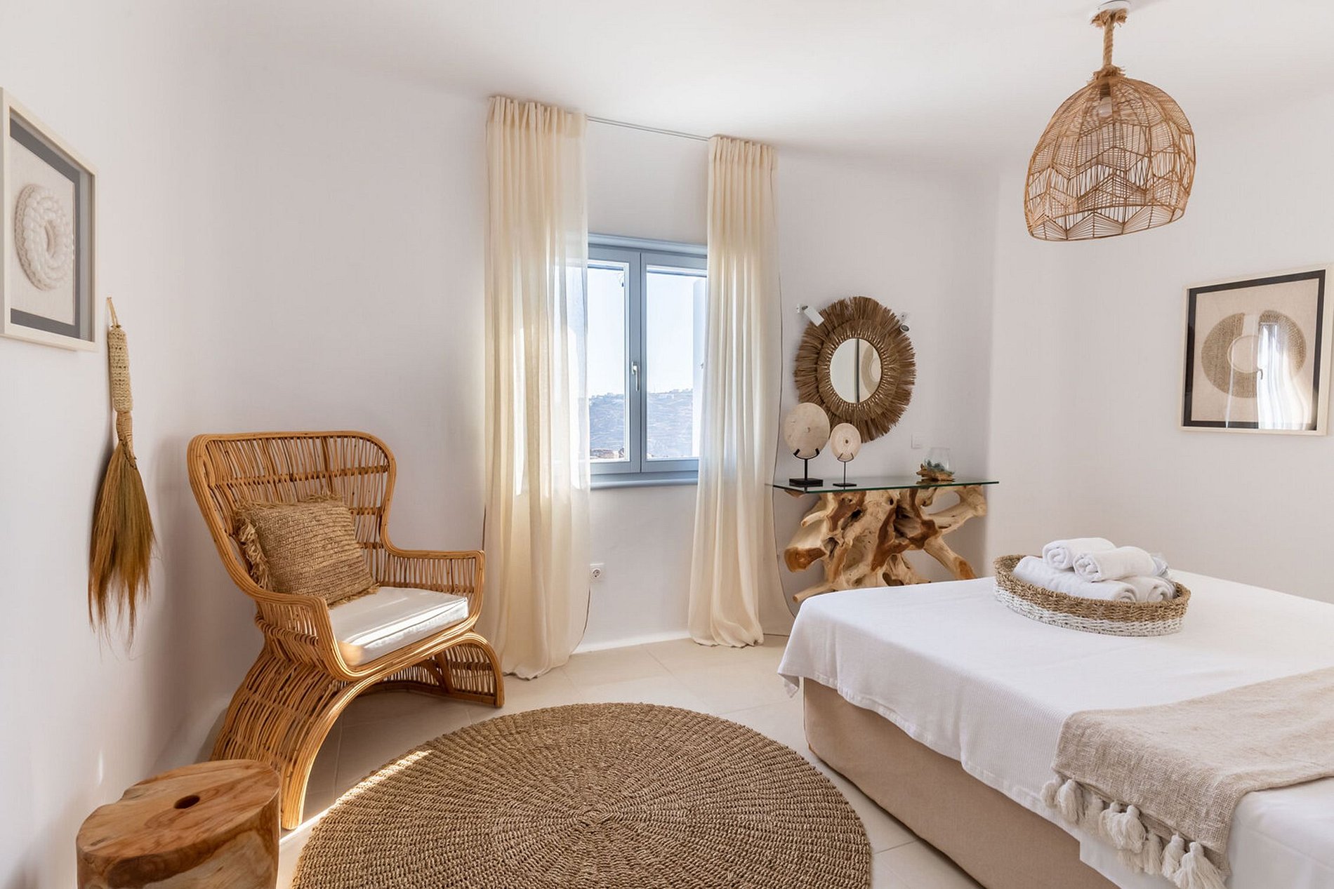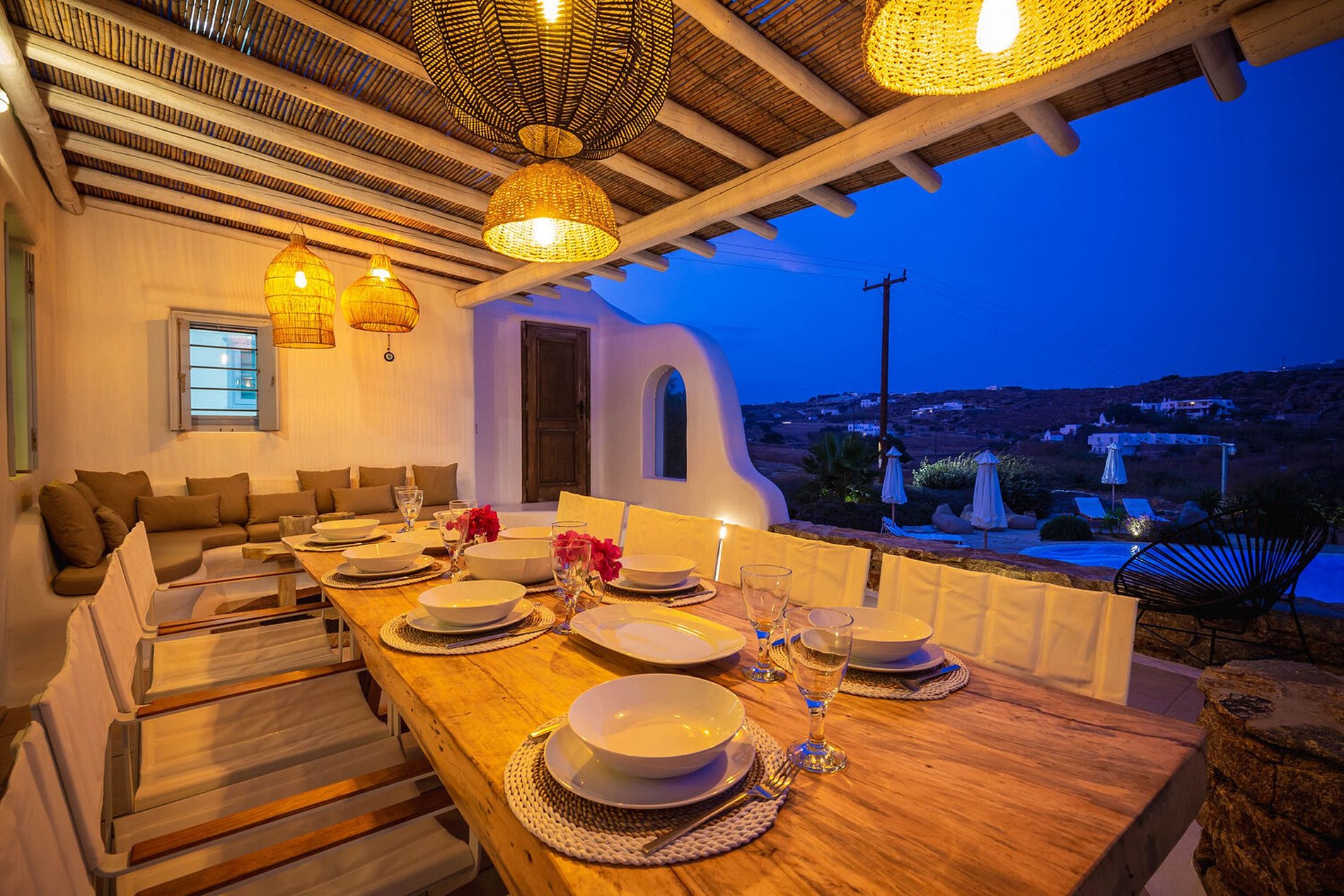 Villa is located in the south of Mykonos, overlooking the Paraga and Platis Gialos beaches, in a remote area with easy access to the airport and the historic center.