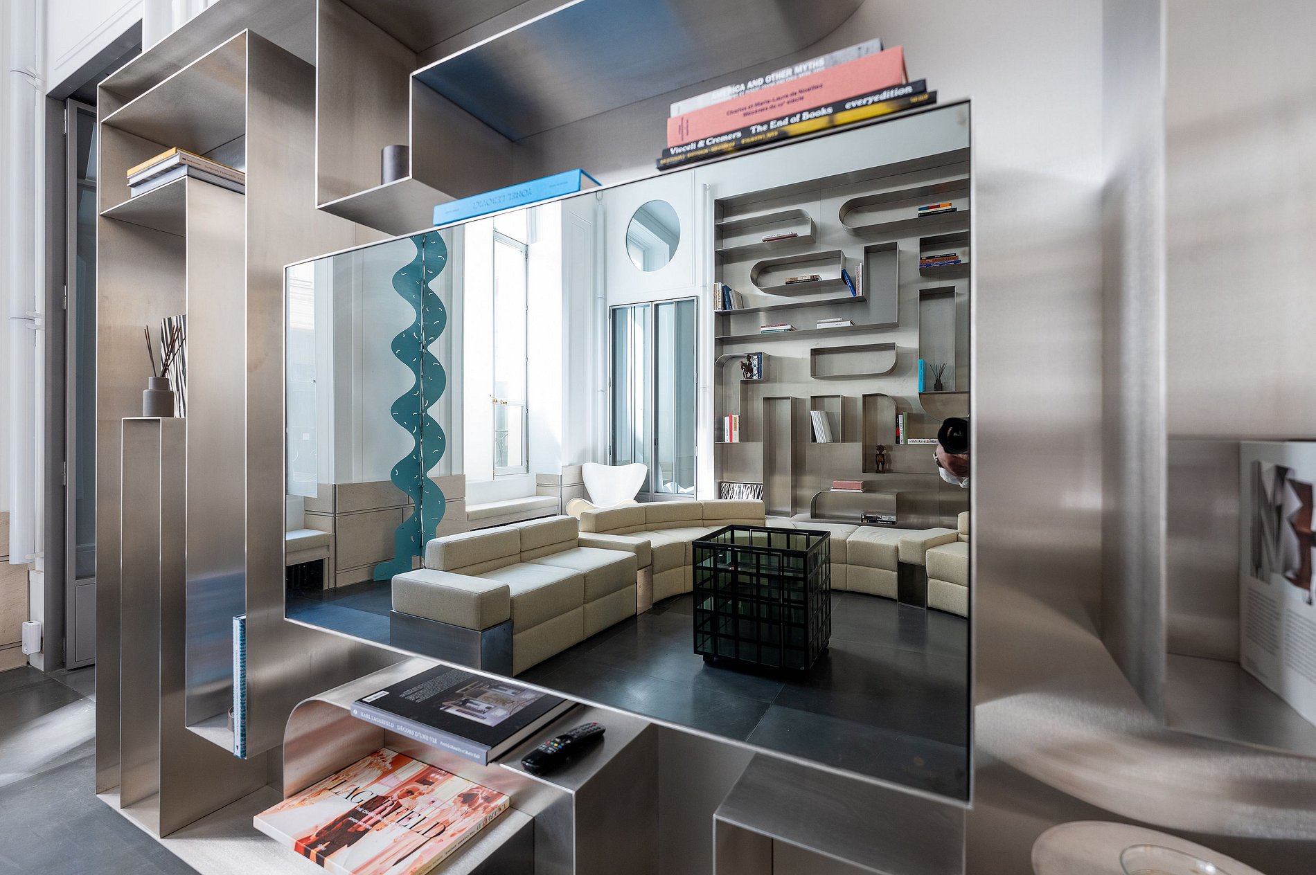 This stunning property spans three levels and is a true homage to Lagerfeld's unique aesthetic, combining exclusive woodwork and refined metal accents that capture the essence of his style.