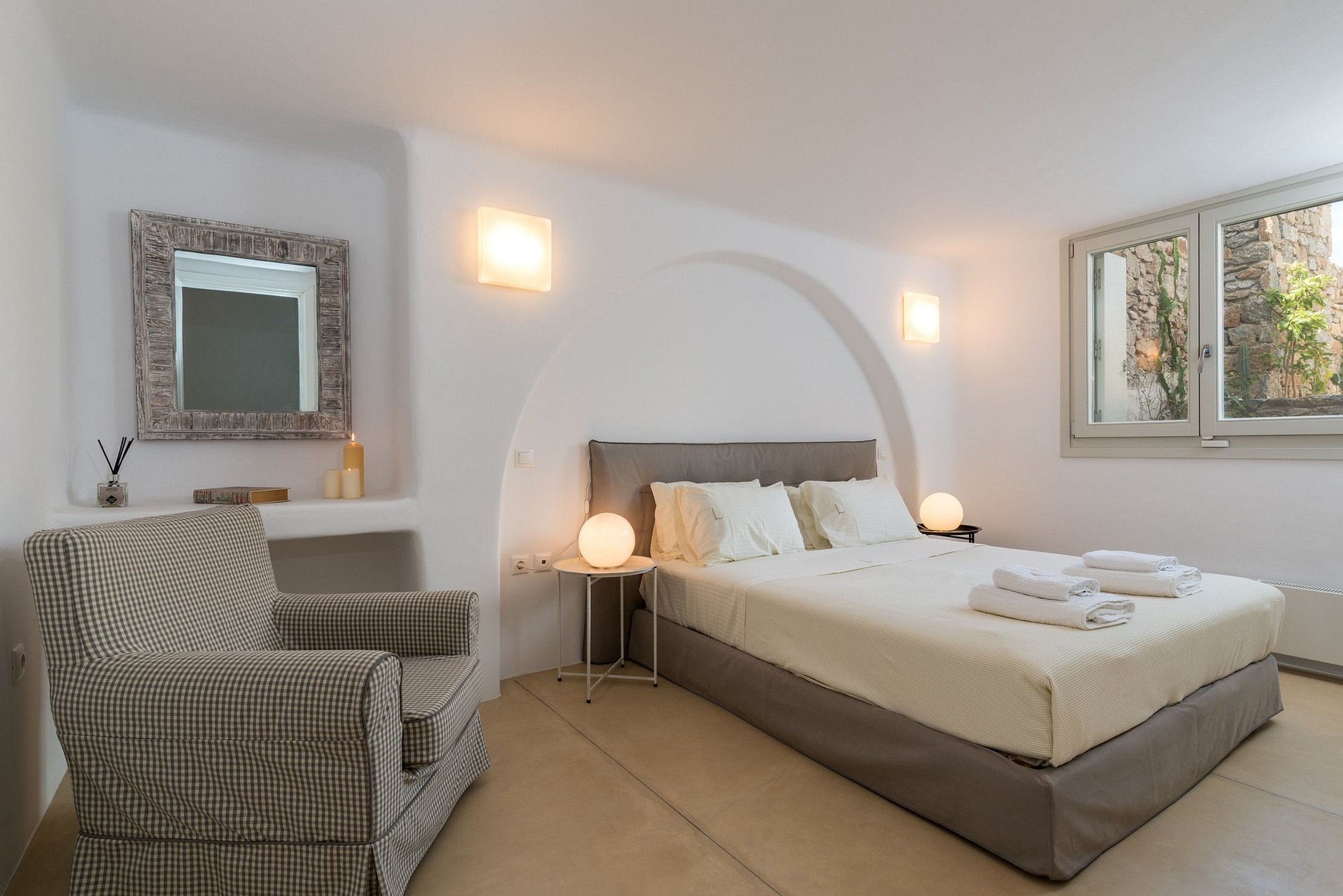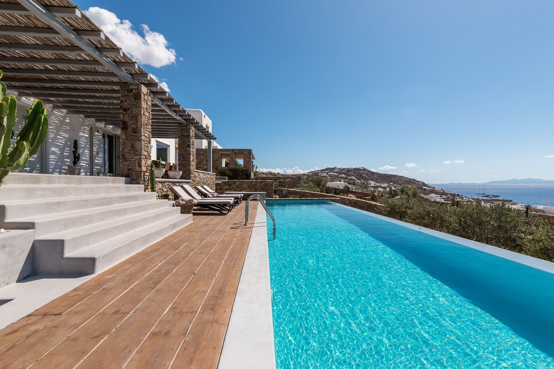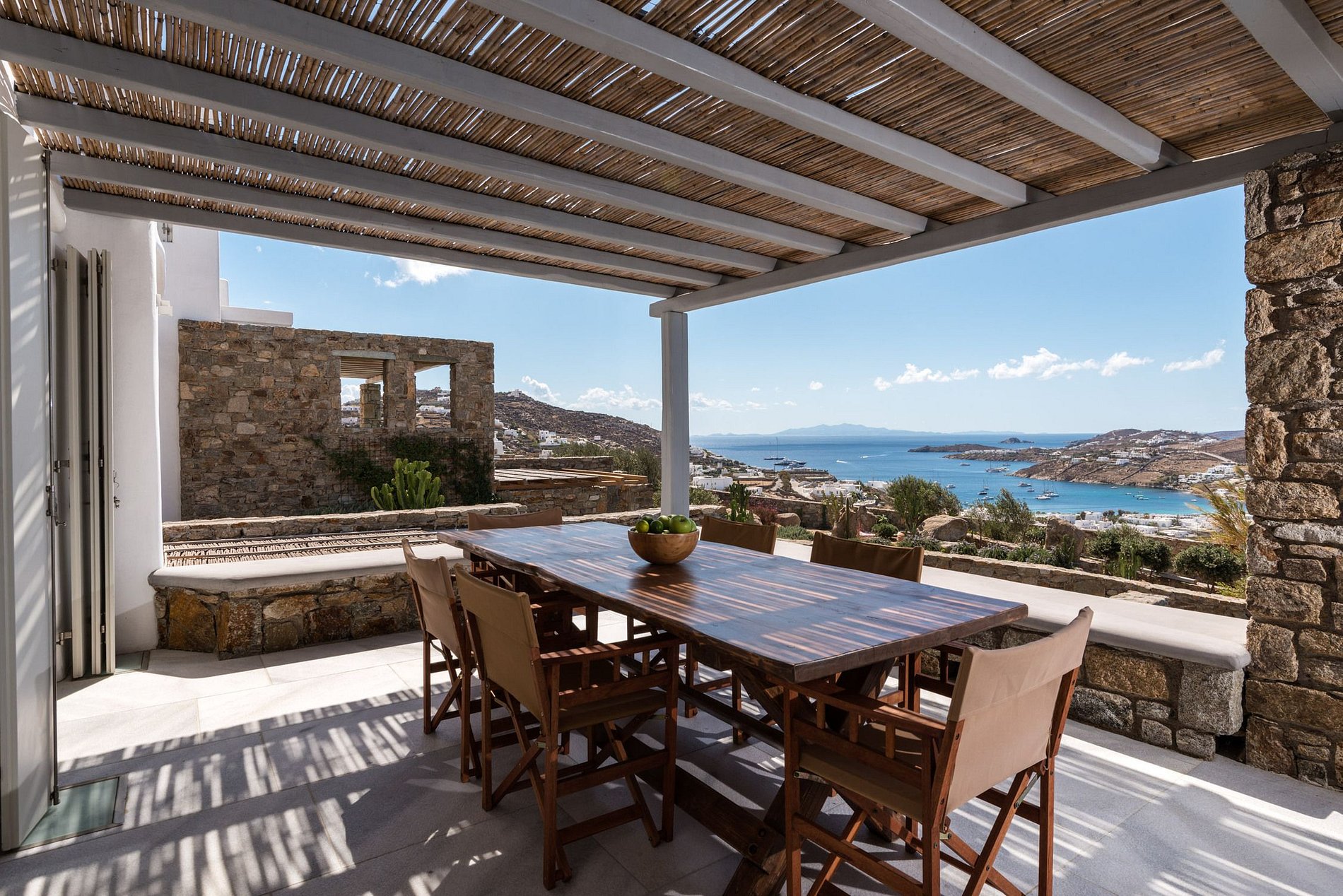 The spacious villa of 230m2 is surrounded by the beauty and serenity of the spirit of Mykonos with charming details and a splendid hilltop view.