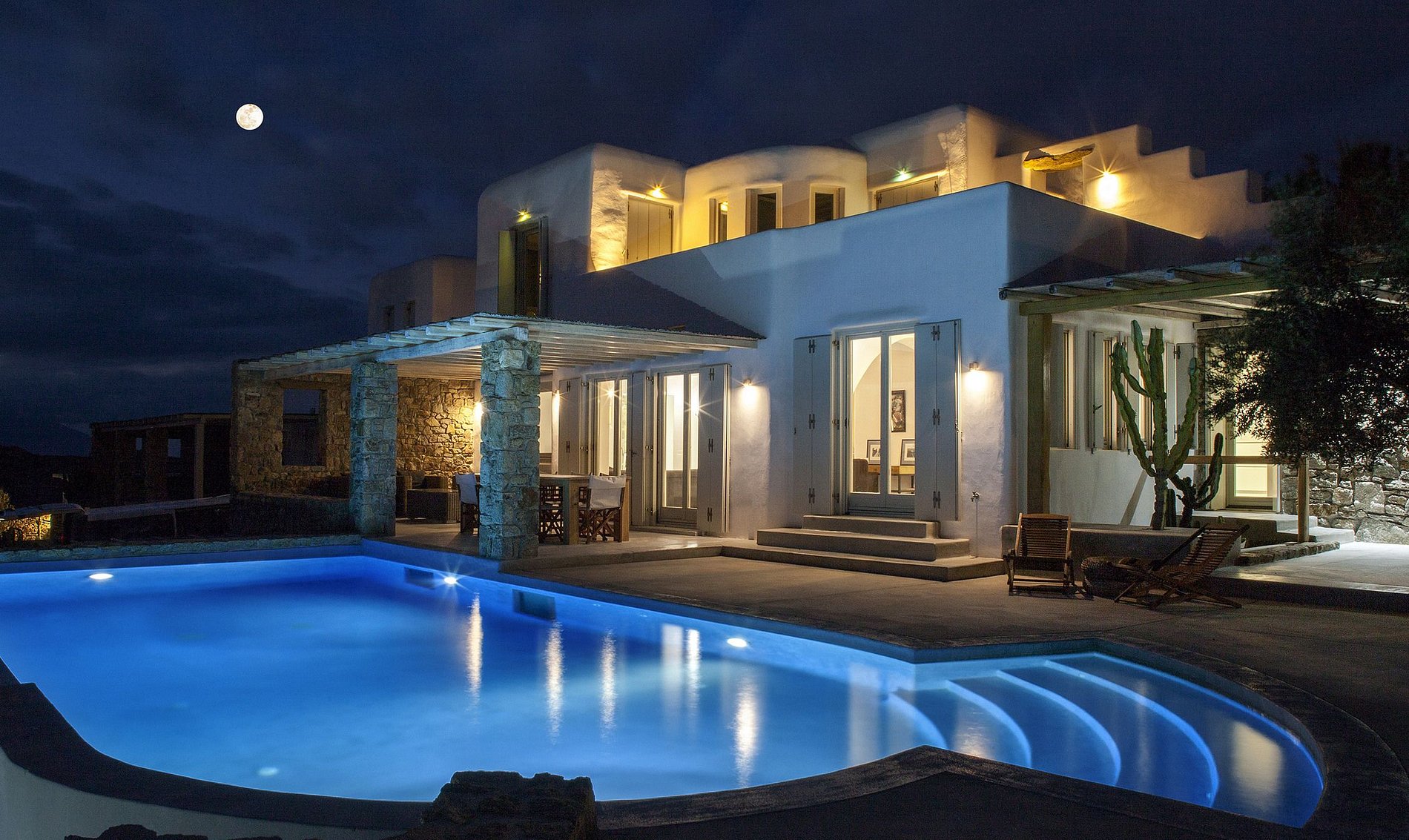 The spacious villa of 300m2 is surrounded by the beauty and serenity of the spirit of Mykonos with charming details and a splendid hilltop view.