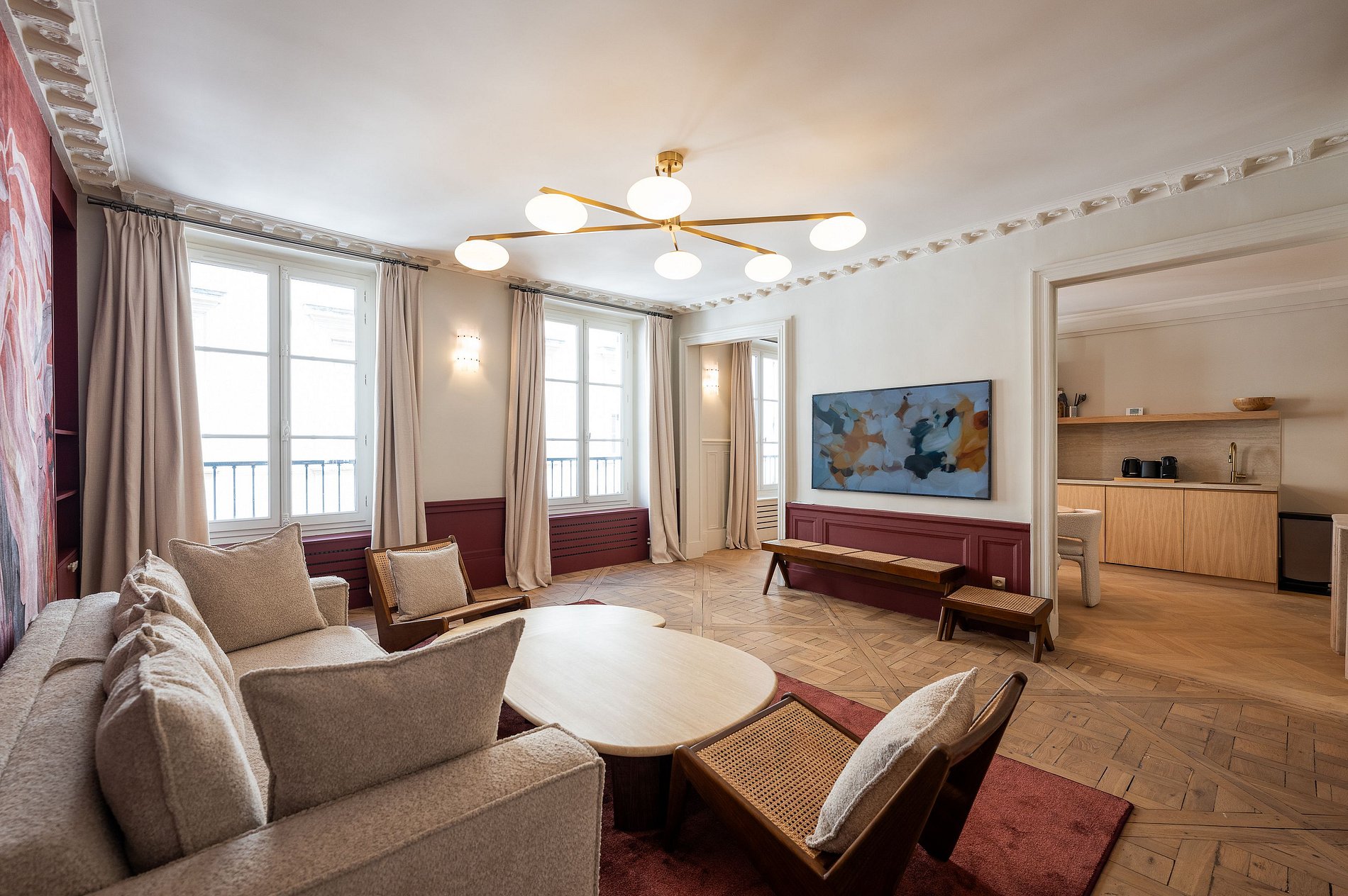 Located in the heart of the prestigious Place Vendôme district, this elegant apartment with 3 bedrooms and 3 bathrooms offers a refined setting and absolute comfort. Fully renovated in 2024, this space combines Parisian charm and modernity, with air conditioning installed in every room for optimal comfort in all seasons.