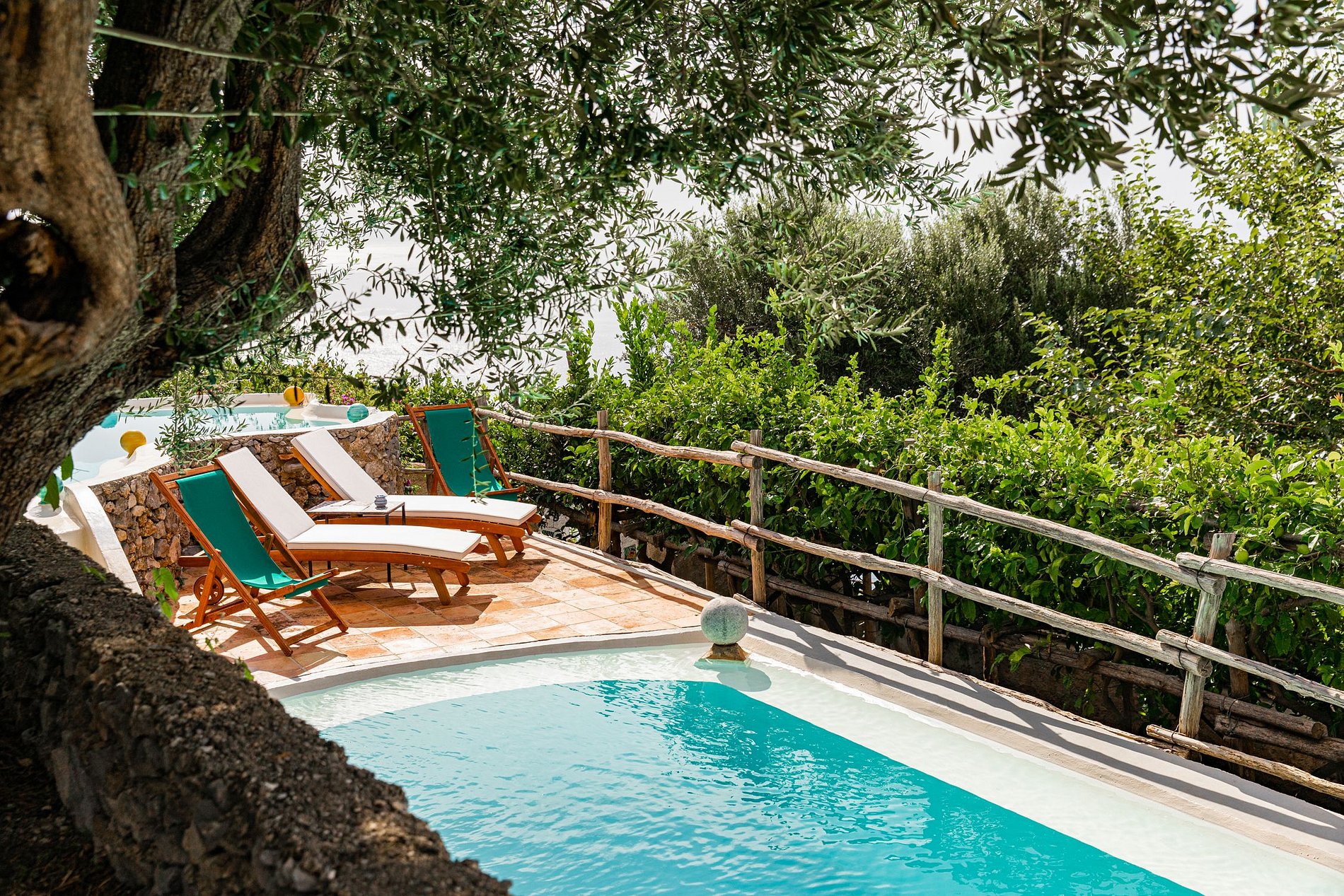 The entire villa is reserved for exclusive use of guests and with its 6 bedrooms and 5+1 bathrooms can accommodate up to 12 people . For larger groups, a second independent villa of the same estate can be booked to accommodate up to 28 people. As well, there are several delightful private cottages on the estate, which can be rented. A winding path leads down below the tower to a private cove for swimming in the sea and discovering its hidden wonders. The property also boasts an exclusive double-level swimming pool, ingeniously linked by communicating steps, for those who prefer sunbathing poolside.