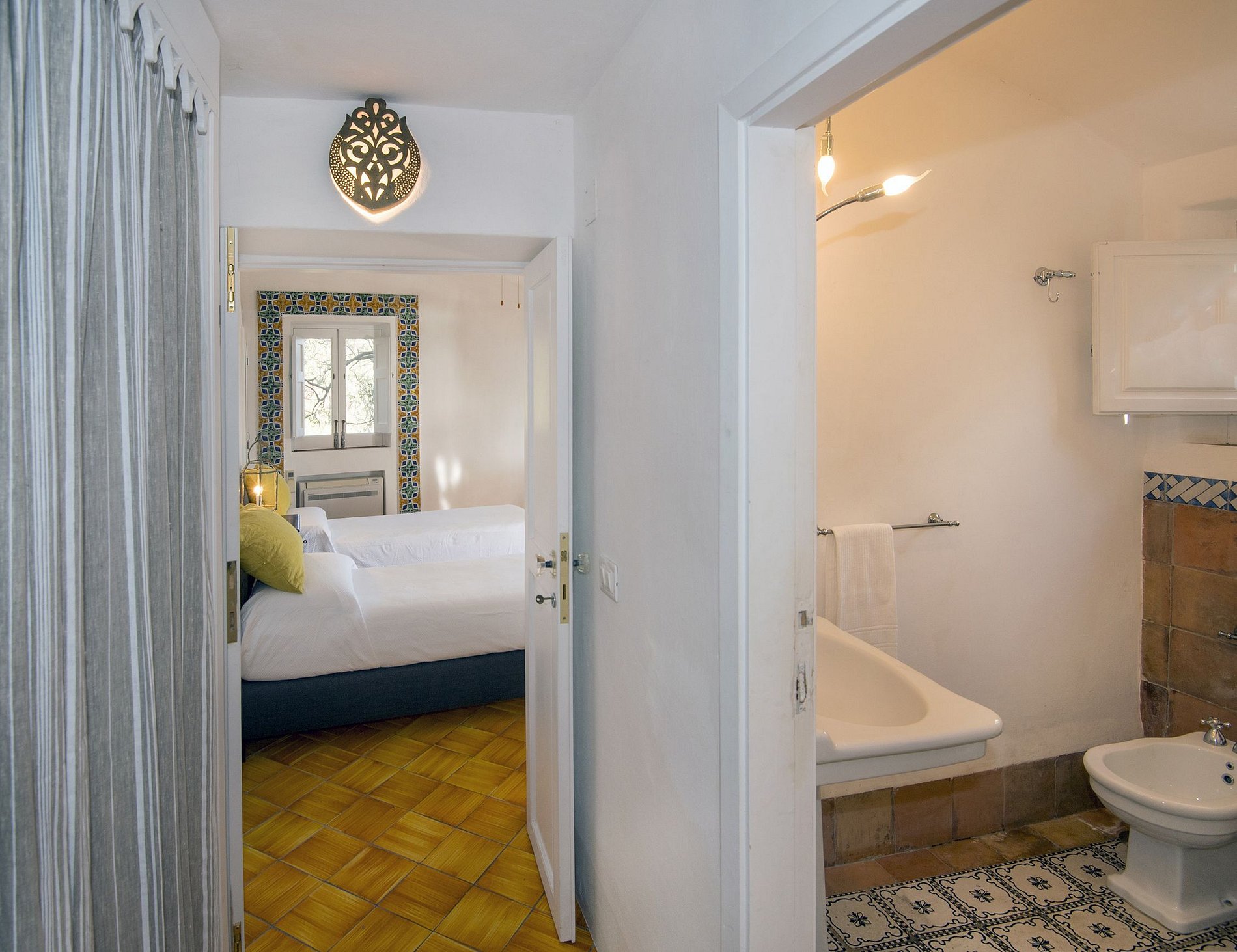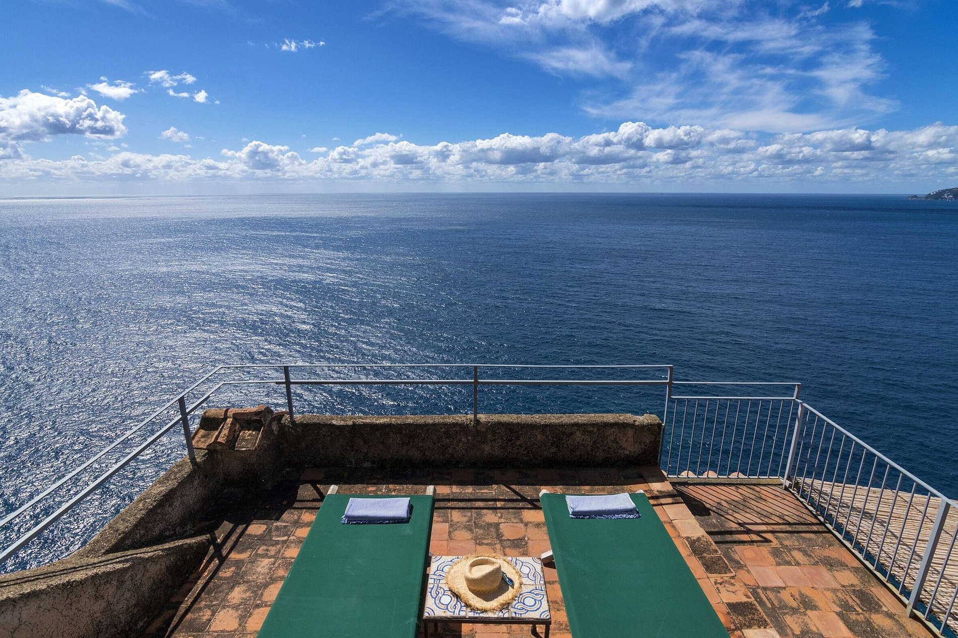 The entire villa is reserved for exclusive use of guests and with its 6 bedrooms and 5+1 bathrooms can accommodate up to 12 people . For larger groups, a second independent villa of the same estate can be booked to accommodate up to 28 people. As well, there are several delightful private cottages on the estate, which can be rented. A winding path leads down below the tower to a private cove for swimming in the sea and discovering its hidden wonders. The property also boasts an exclusive double-level swimming pool, ingeniously linked by communicating steps, for those who prefer sunbathing poolside.