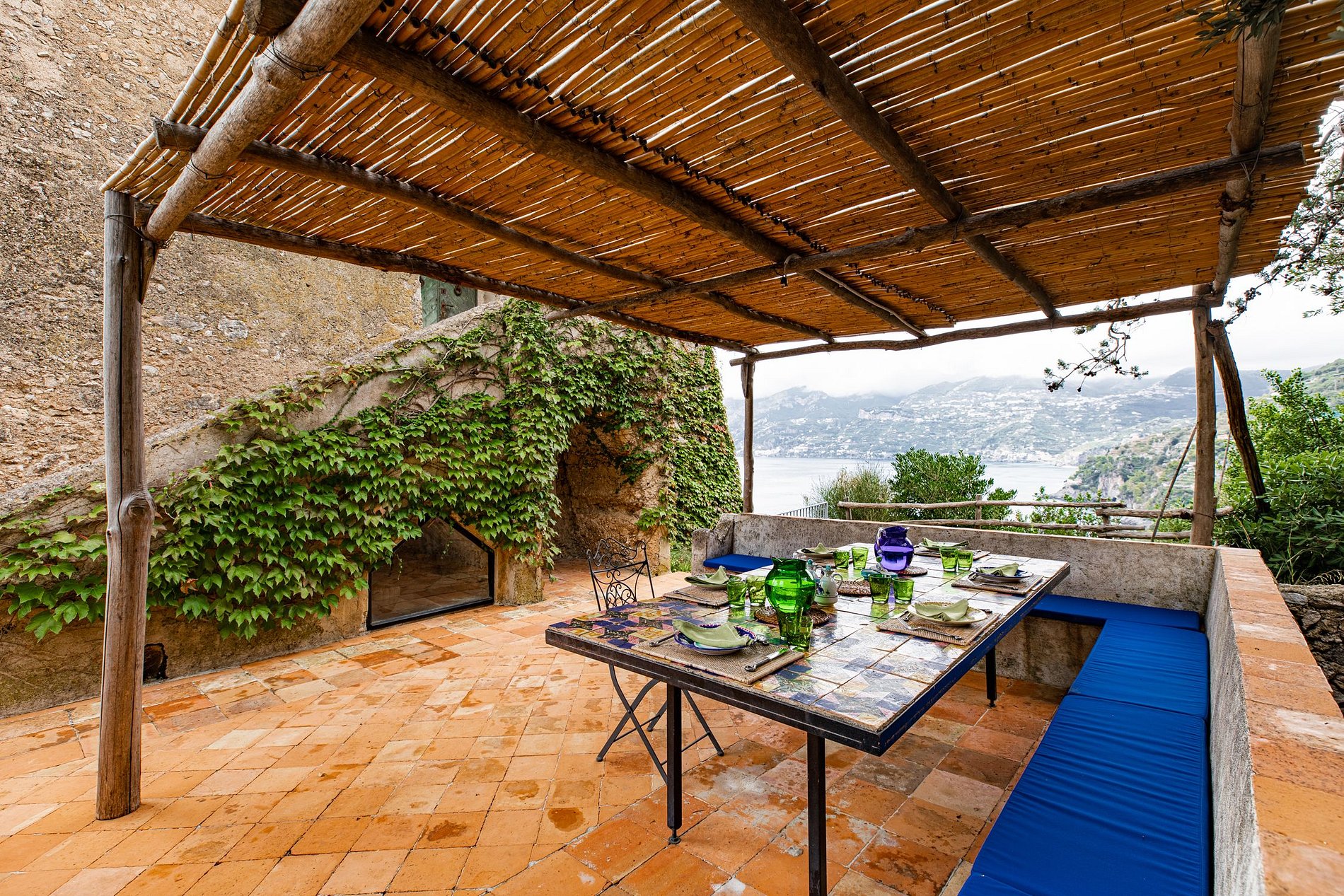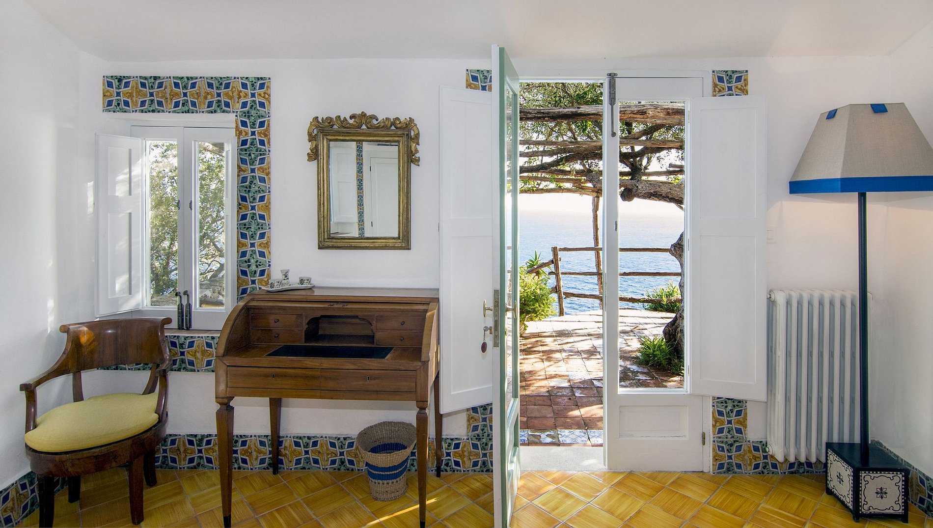 The grounds of this holiday rental villa descend the hillside from the coastal road through dense Mediterranean vegetation of scented pine woods, lemon trellises and beautifully tended gardens all the way to the sea.