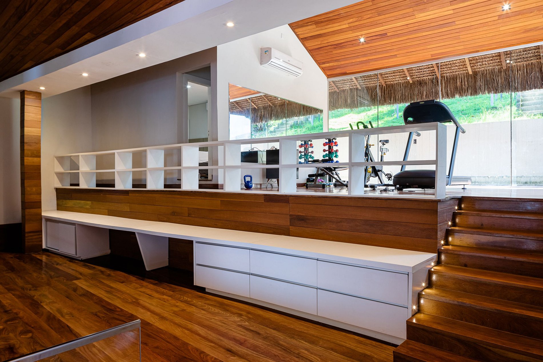 The house at the back has access to the island's forest and a small gym with weight training materials, exercise mats, exercise bike and treadmill. Close to the house, around the island are bars and restaurants with typical foods from the region that can be accessed by boat.