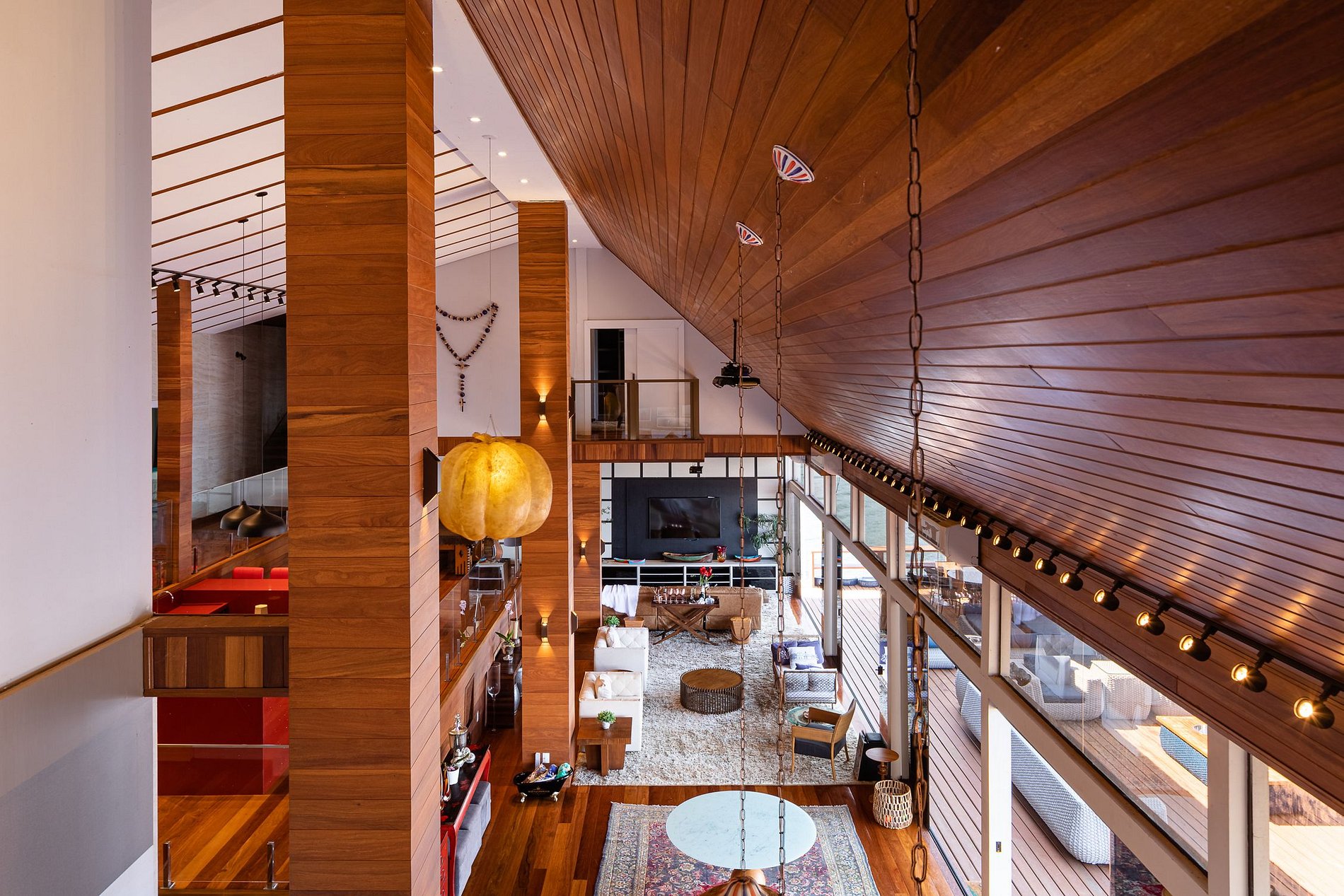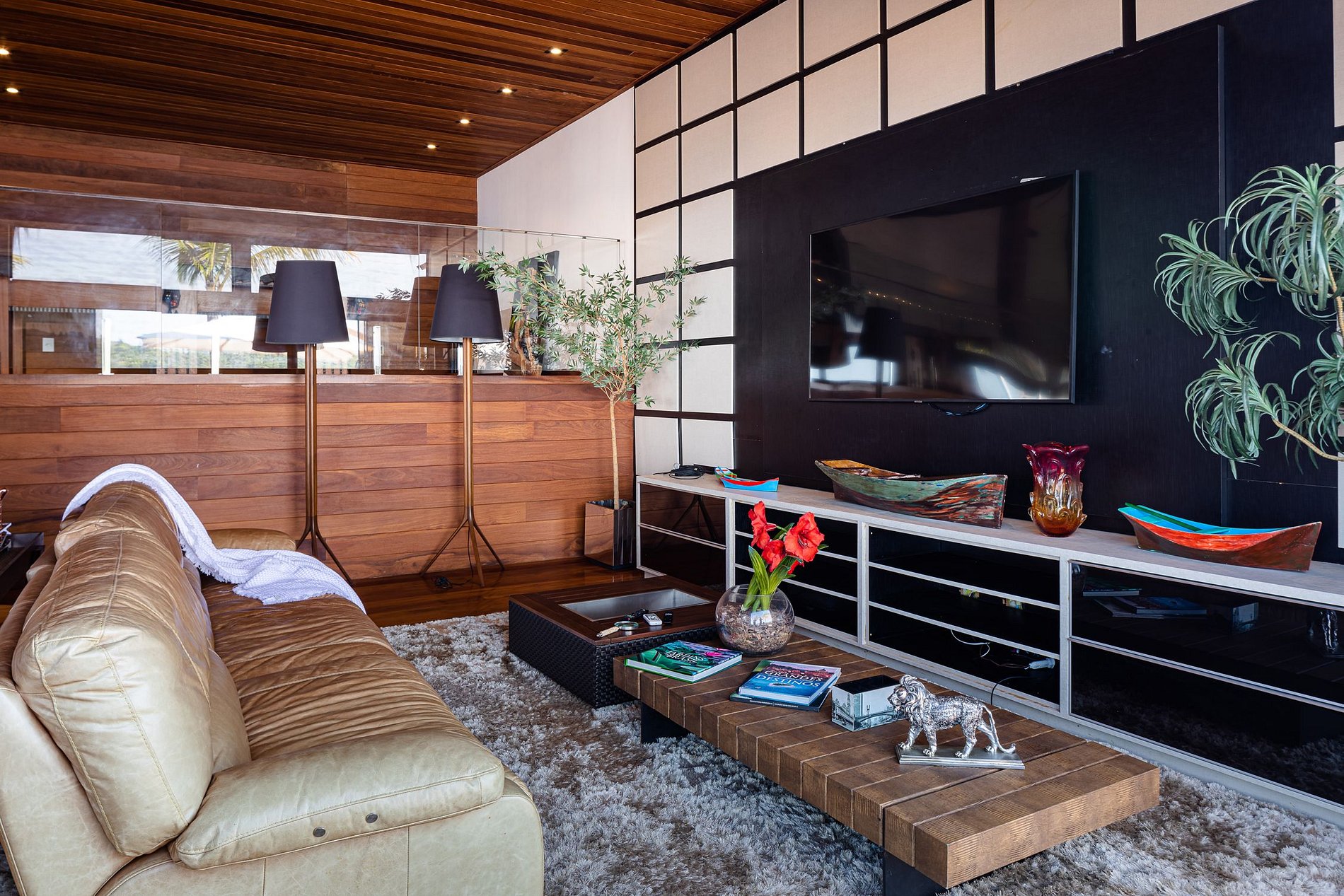 The beautiful experience of staying in this house starts at Marina Costabella where a boatman waits for the guests to take them to the house, passing near Praia do Pontal, in a few minutes trip to the house on the island. The entrance to the house is through the pier where there is a large space with sofas to adorn the landscape, sun loungers for sunbathing and a large outdoor dining table with 16 outdoor seats covered by two large umbrellas.