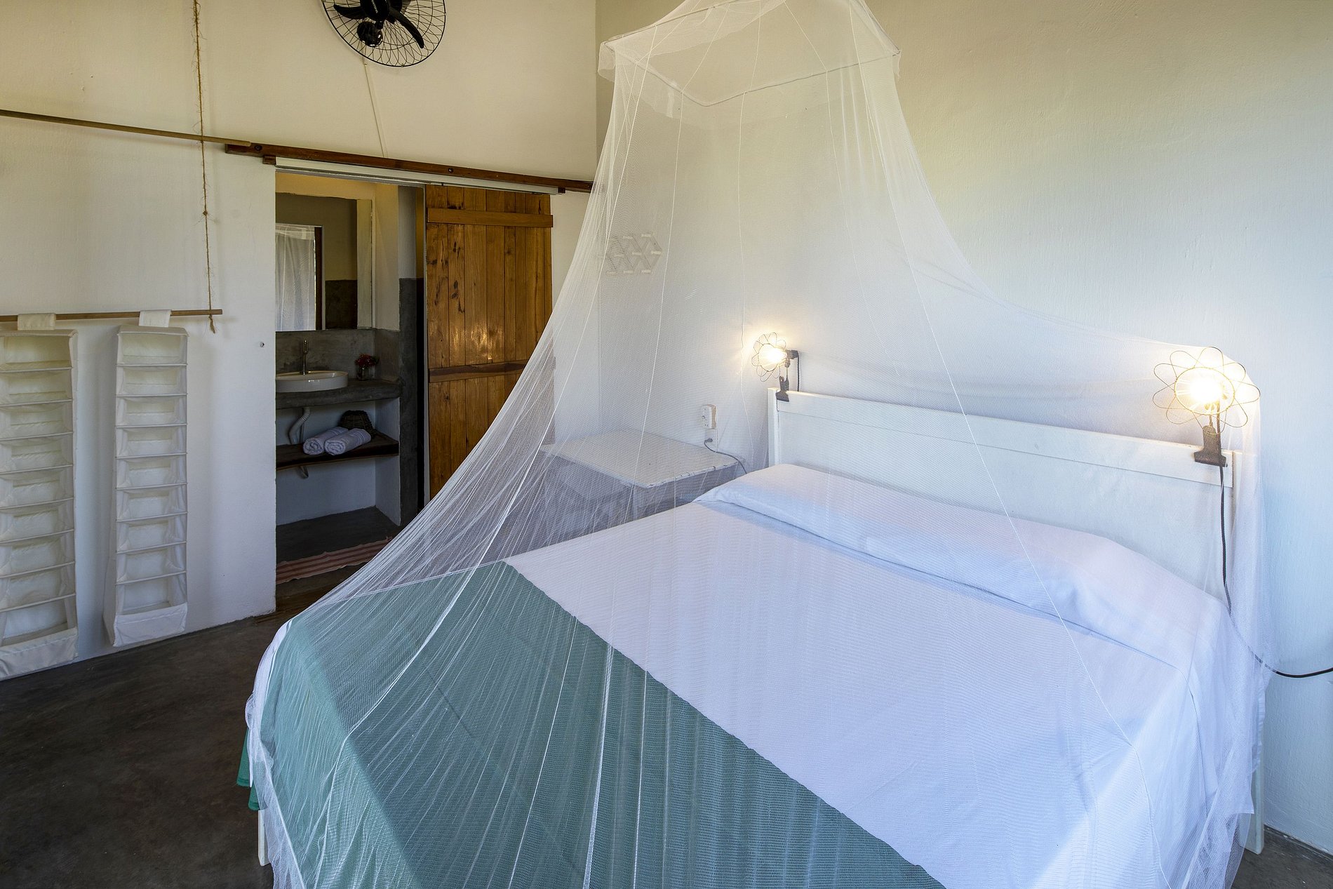 Each suite has fans, linens are provided, and the kitchen is also equipped.