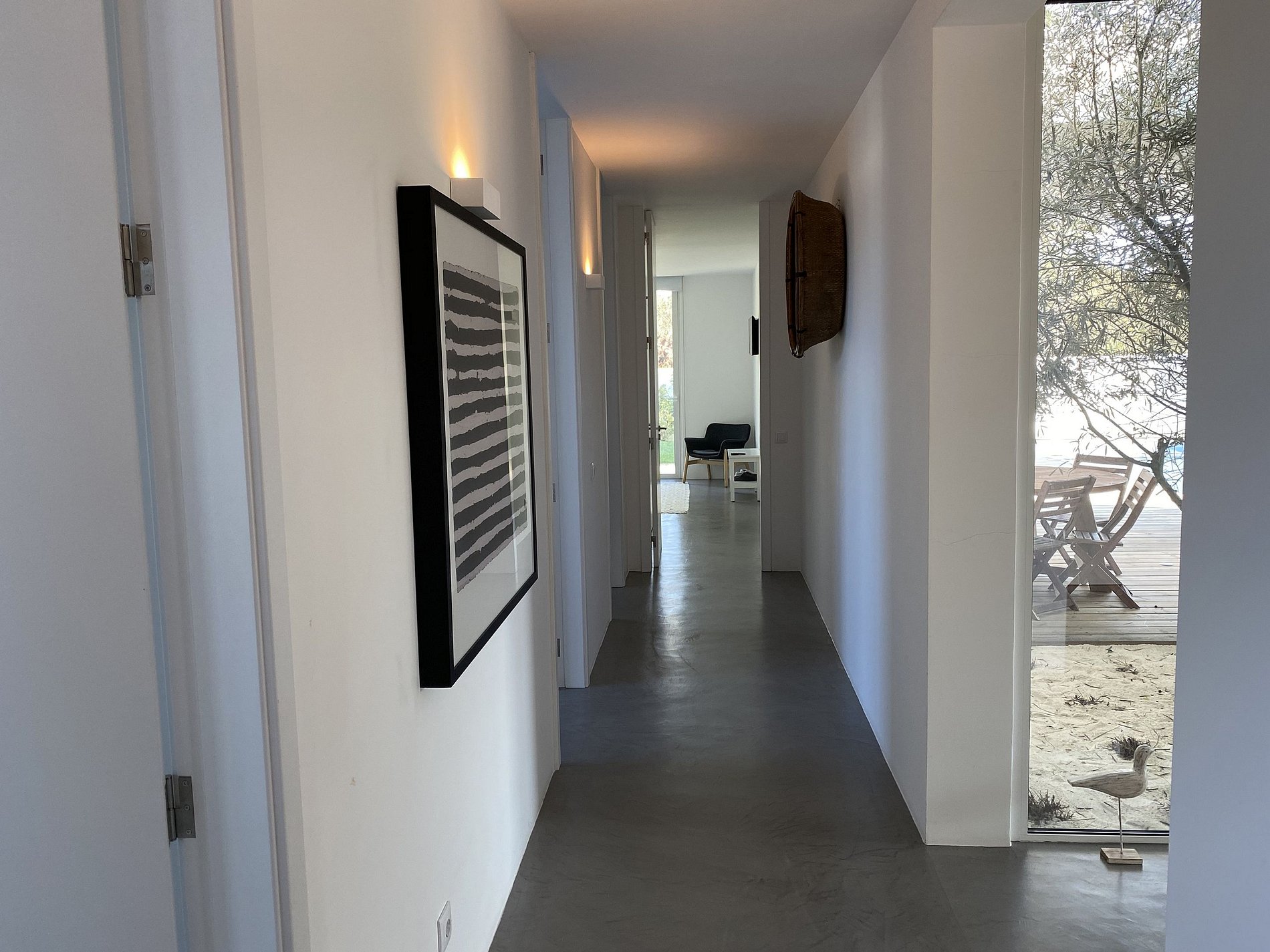 The stylish house can accommodate up to 6 guests with three air-conditioned bedrooms featuring large windows that create a unique space where indoor comfort and outdoor scenery come together. The villa offers a fully equipped kitchen with a comfortable lounge and adjacent dining area. Beautiful living room with style, elegance, and rustic décor. Equipped with state-of-the-art amenities, the villa also combines its impeccable interiors with a beautiful wooden terrace and swimming pool. Surrounded by the garden and facing a beautiful pine forest, this is the perfect setting to enjoy fantastic vacations in Comporta. This contemporary property is perfect for families and groups of friends, with plenty of common living space and light-filled spaces.