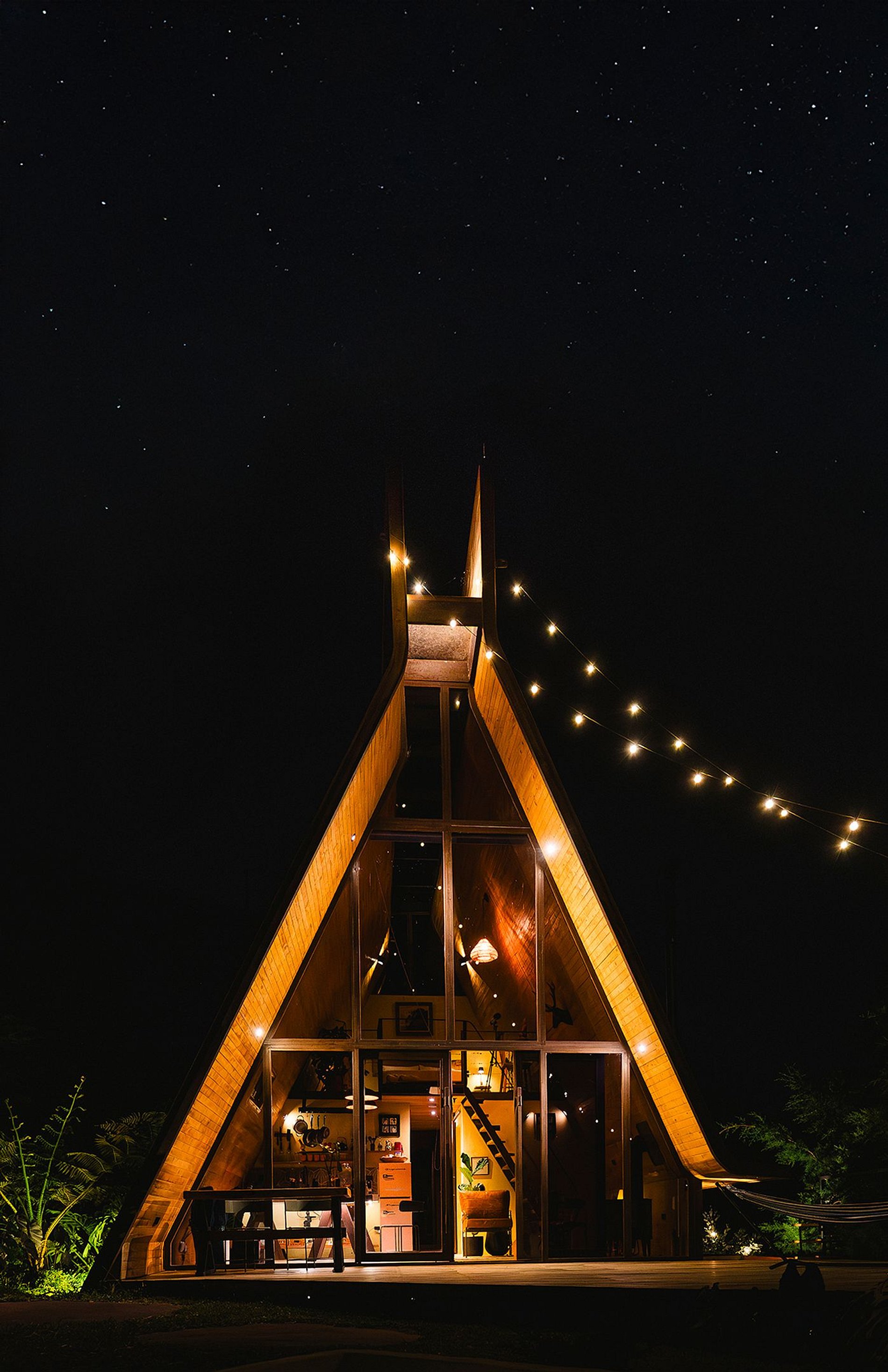 Inside, you’ll find an organic, clean, and modern design that embodies the Japandi style—a harmonious blend of Japanese simplicity and Scandinavian functionality. With a glass roof that floods the space with natural light, you can stargaze from the comfort of your living room or cozy up in front of the wood-burning fireplace with a game of chess.