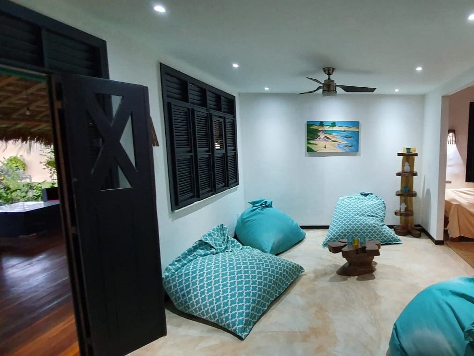 In the internal space, the house is divided into 2 floors, the first floor is where the living room, dining room, kitchen and exercise area are located, all rooms furnished with modern furniture and appliances. The floor is decorated with arts and crafts that provide immersion in the local culture.