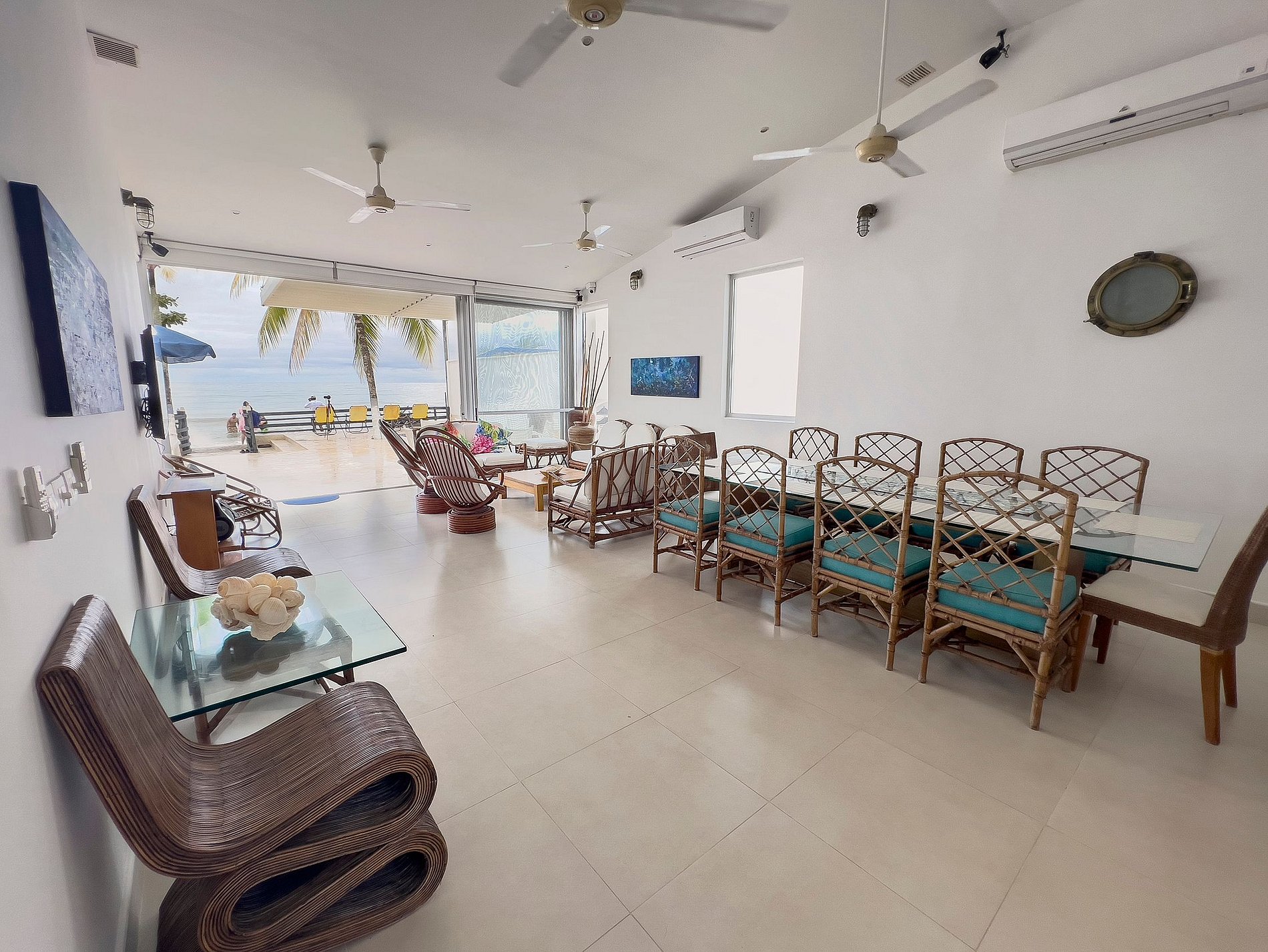 With views and direct access to the sea, this property has everything necessary for up to 21 guests to enjoy the best of the Colombian Caribbean. Distributed on two levels, we can find 6 rooms with air conditioning and a private bathroom. In the common spaces, we start with a dining room, where guests can enjoy delicious food or watch a movie in the social room, these spaces also have air conditioning for greater comfort.