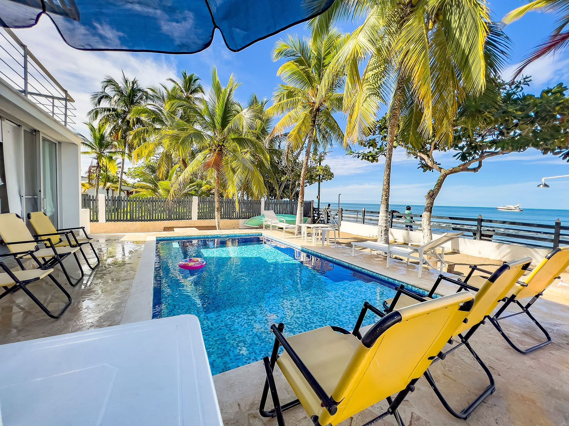 But without a doubt, the spaces that make this house special are located outside, with direct access to the white sand beach, and stairs that will lead you directly to the area where you can enjoy a private pool and jacuzzi with views of the sea, in this space you can find sunbeds and chairs, the ideal space to enjoy the sunset with a refreshing drink in hand.