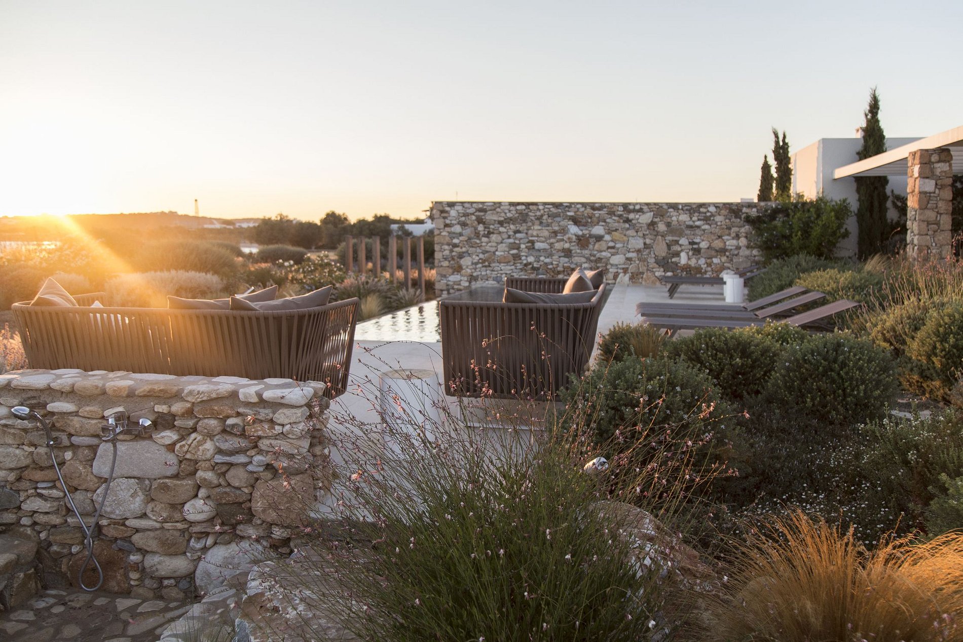 Cutting edge ecological construction blends organically with chic and welcoming interiors, framed beautifully in the Aegean seascape.