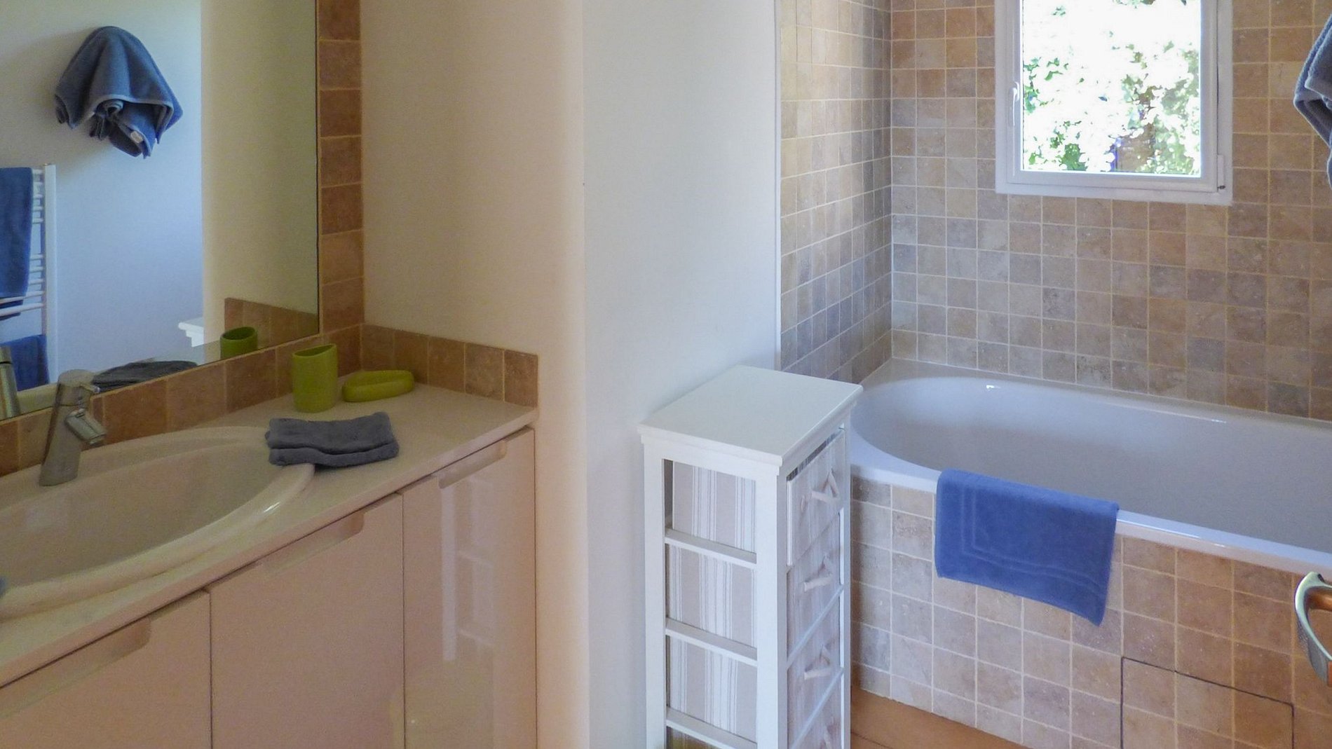 La propriété s’étend sur 2 étages. Au premier étage, se trouve un salon avec un espace repas et un accès au jardin. La cuisine est équipée des appareils les plus modernes et possède un accès au jardin. La suite parentale est située au premier étage de la maison, la chambre est climatisée et dispose d'un lit double confortable et d'une salle de bain privative avec baignoire.