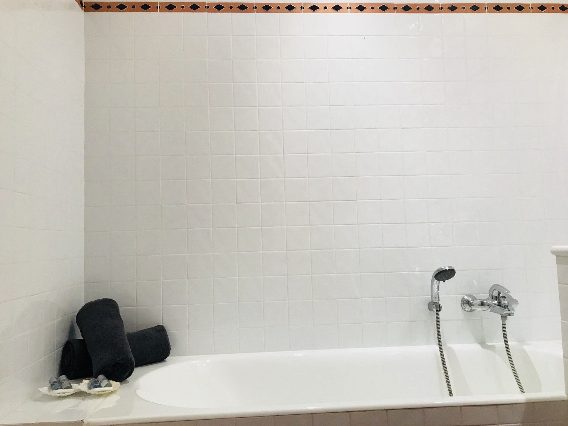 Upstairs, the living areas open generously onto the outdoors. You will find a bright and inviting living room with access to a terrace, as well as a dining area that accommodates up to six guests, connected to a fully equipped kitchen. The spacious terrace, bathed in sunlight from sunrise to sunset, is perfect for al fresco dining and relaxing moments.