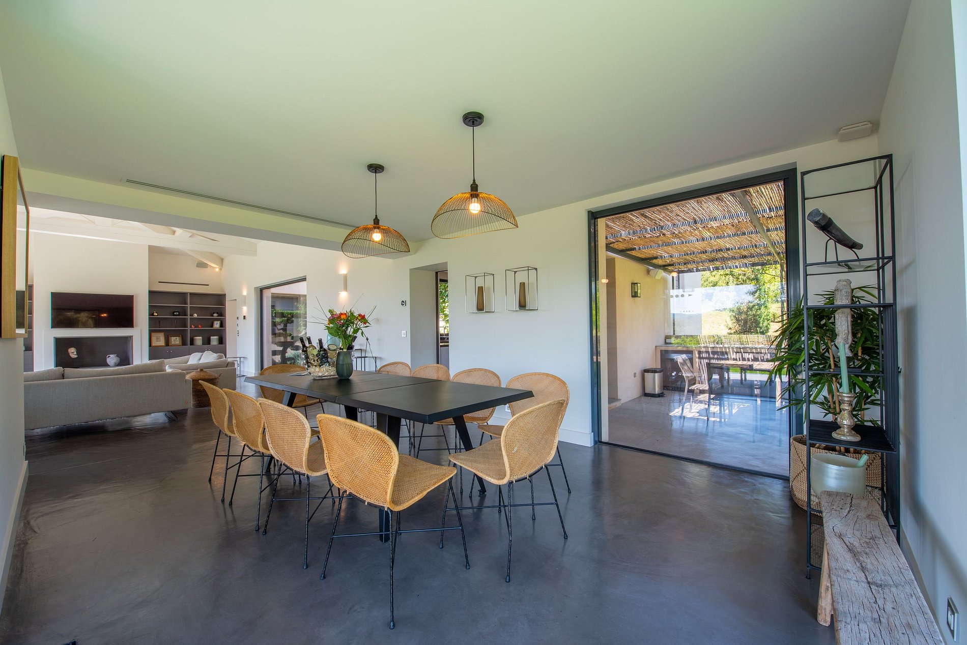 Outside, the house has an outdoor dining table and a barbecue for preparing delicious meats, a large infinity pool with a view of the region.