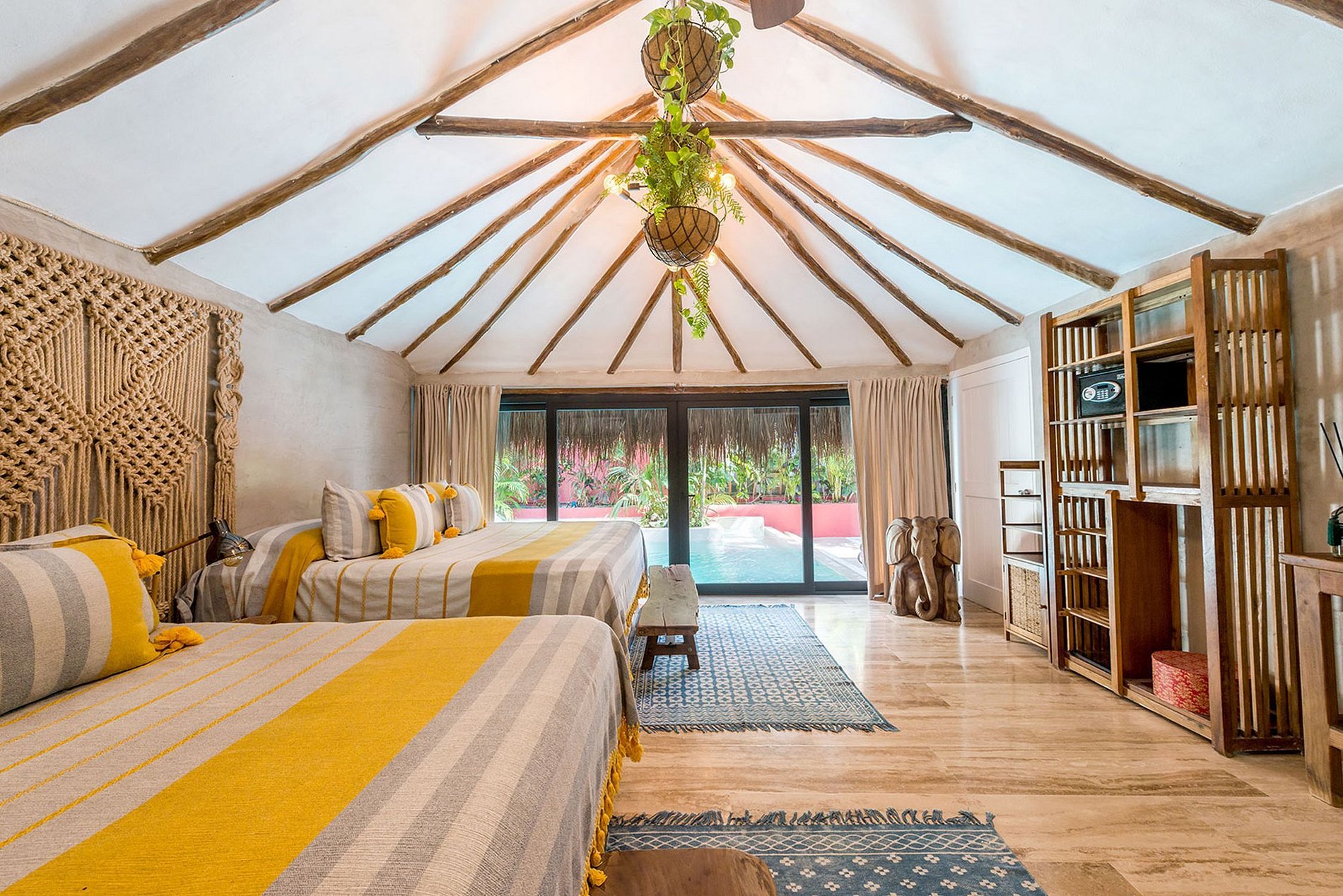 This villa is a tropical oasis hidden in the jungle of Tulum on the Riviera Maya. This beach house balances rustic elegance with a boho vibe to create a casual seaside retreat — you won’t find another Mexico accommodation like it. Situated on a white-sand beach, the house fronts Tulum’s pristine coral reef, the second-largest coral reef on the planet. You’ll feel like you are worlds away from civilization, yet top-class restaurants and boutique shops are close by as are the remains of a pre-Columbian Maya walled city. A blissful escape from everyday life, this unique house oozes beachy style and sleeps up to eight people in three bedrooms.