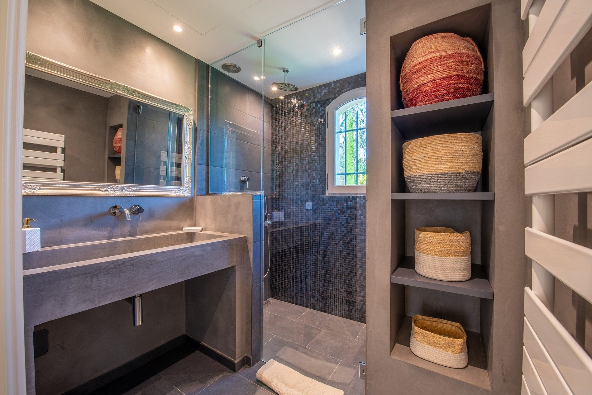 Cercada por belas paisagens, a villa se encontra em uma área residencial encantadora e está a poucos minutos do centro da cidade e de belas praias da região e está a cerca de 30 minutos da histórica cidade se Saint Tropez.
