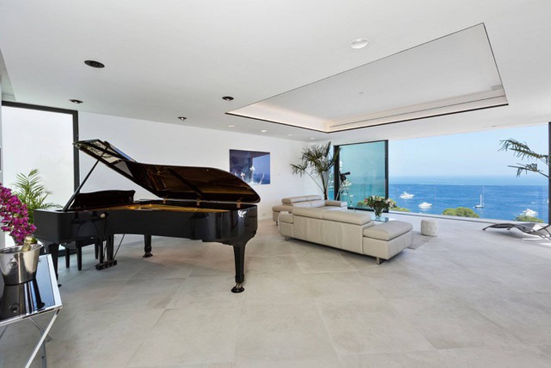The villa has a 365 m2 living space on two floors, the design includes a modern feel, and is composed of an open-plan living area with a fully equipped open concept kitchen spanning to the terrace and five bedrooms all with ensuite bathrooms and a Mediterranean Sea view. A rooftop terrace featuring panoramic views of the French Riviera is also the perfect place for sunset cocktails.