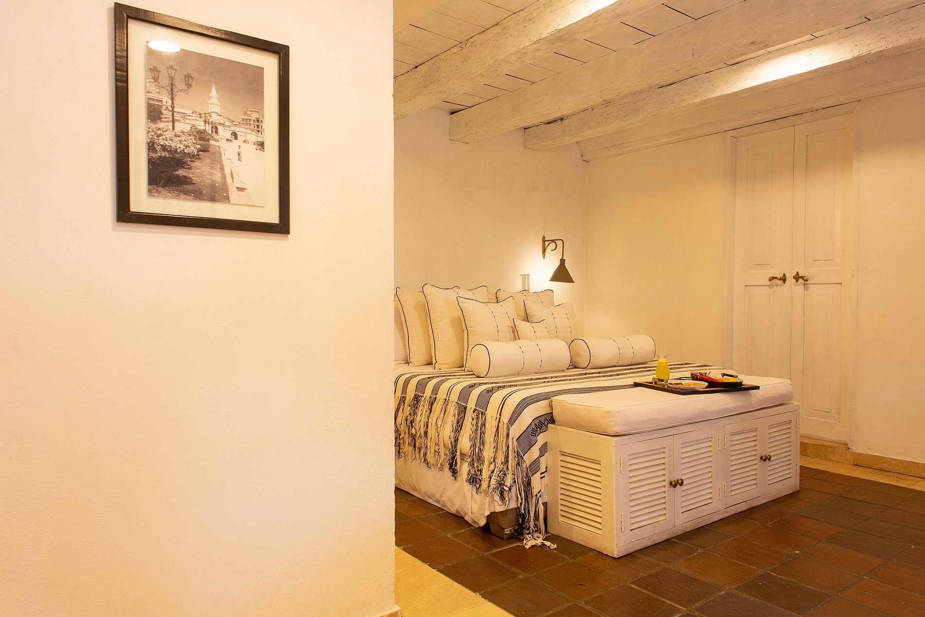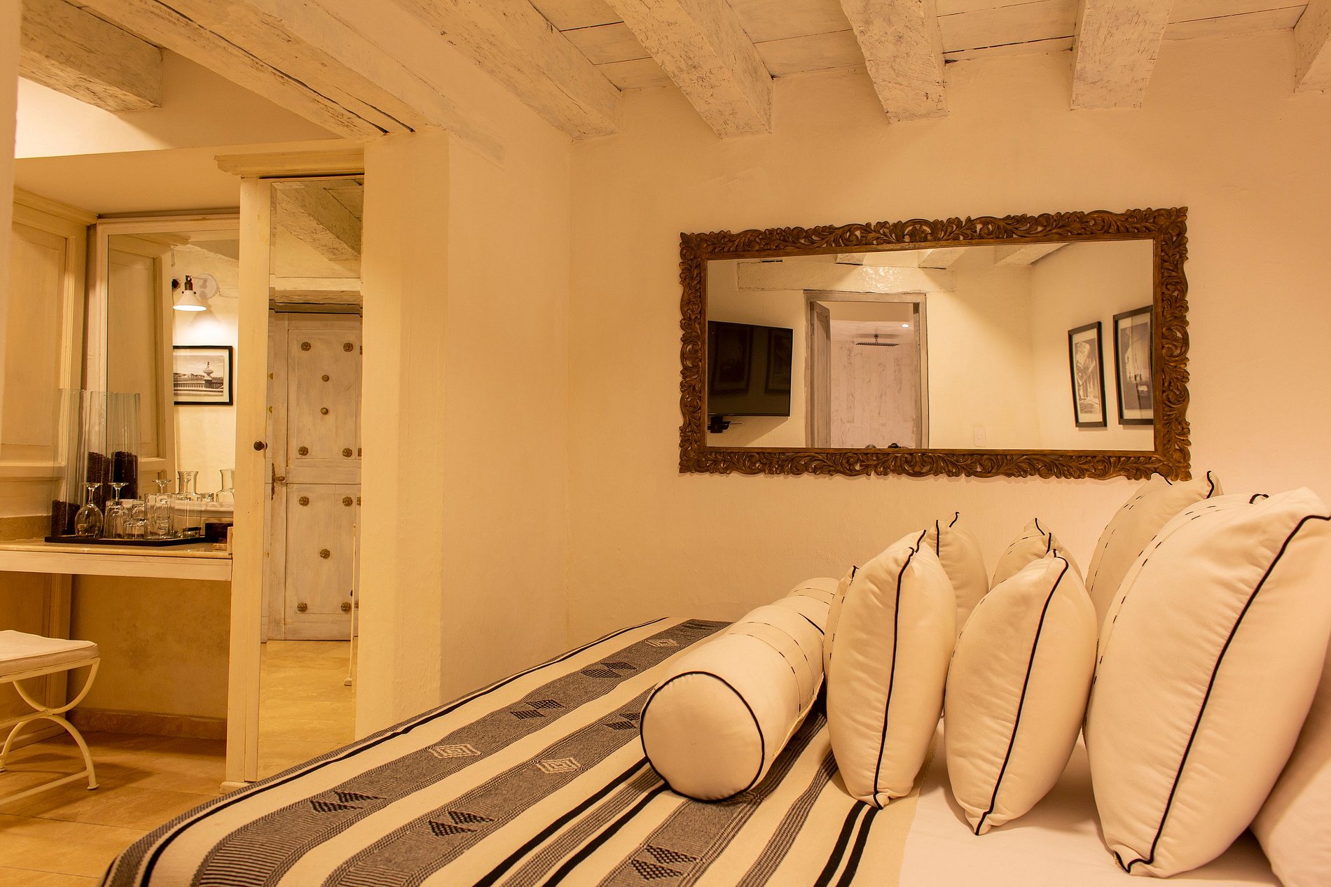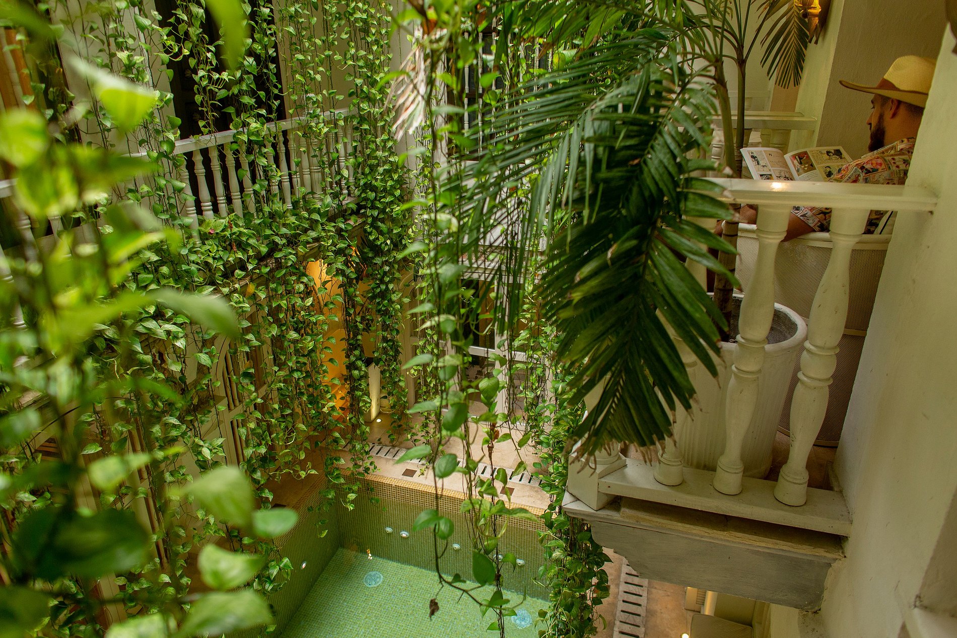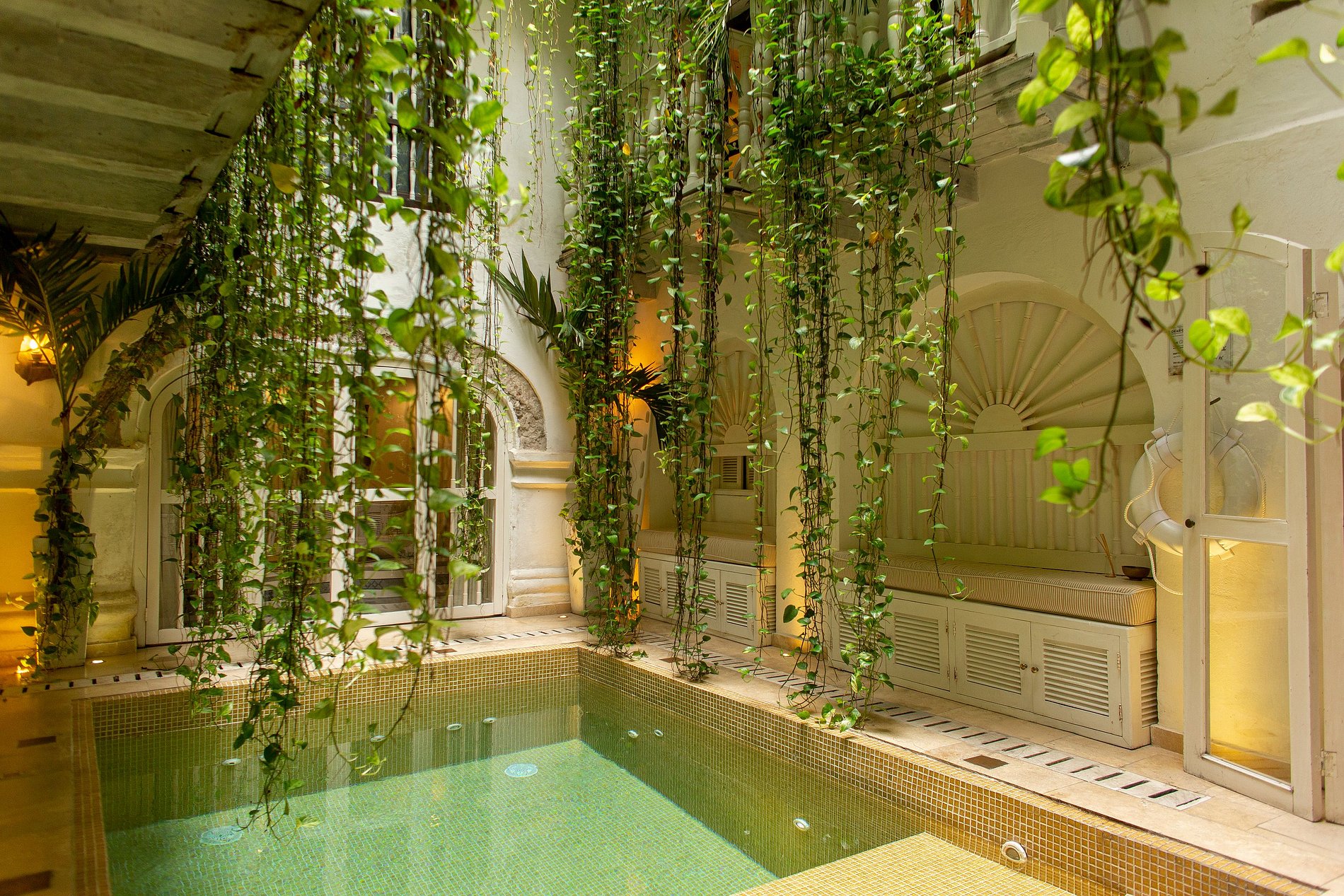 Throughout the property, you can marvel at the thousands of colonial details that make it so magical and unique. This mansion is so special that it is the only 24k gold leaf rooftop pool in South America, with a spectacular view of the cathedral and a private sunset deck with a sea view.