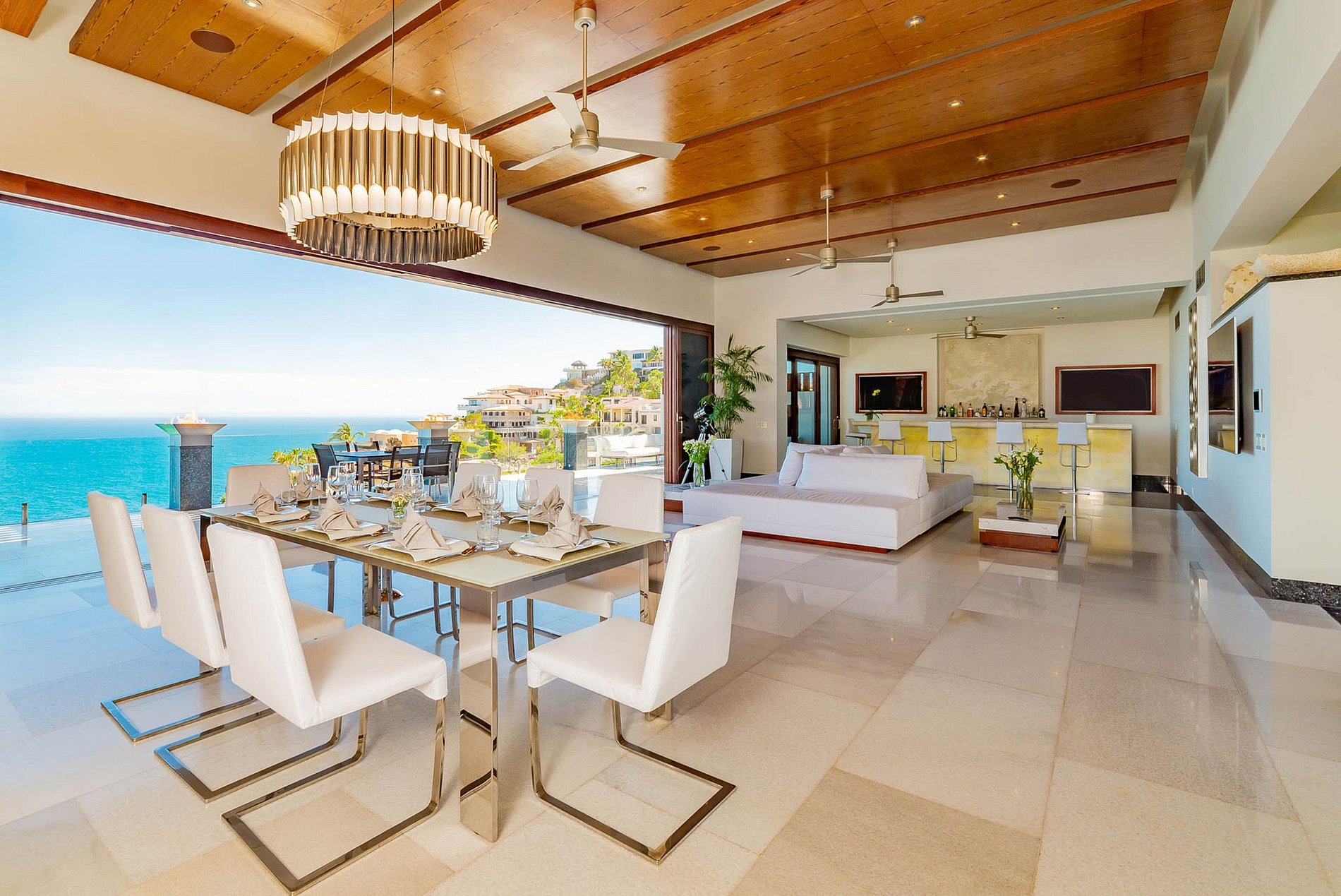 On the outside, the terraced grills feature a heated infinity pool - with 12-foot cascades - swim up bar, outdoor kitchen by the pool, BBQ grill, outdoor TV and a breathtaking ocean view.