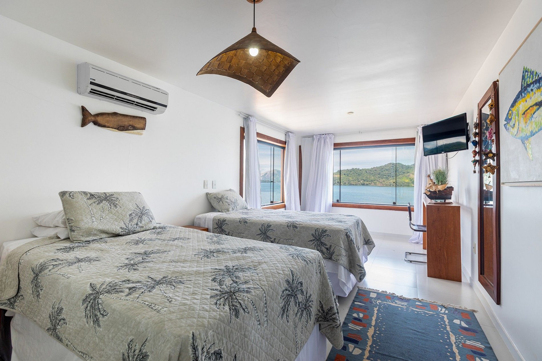 A beautiful house located in one of the most beautiful and wooded condominiums in Angra dos Reis with a small beach and wide views to the sea.