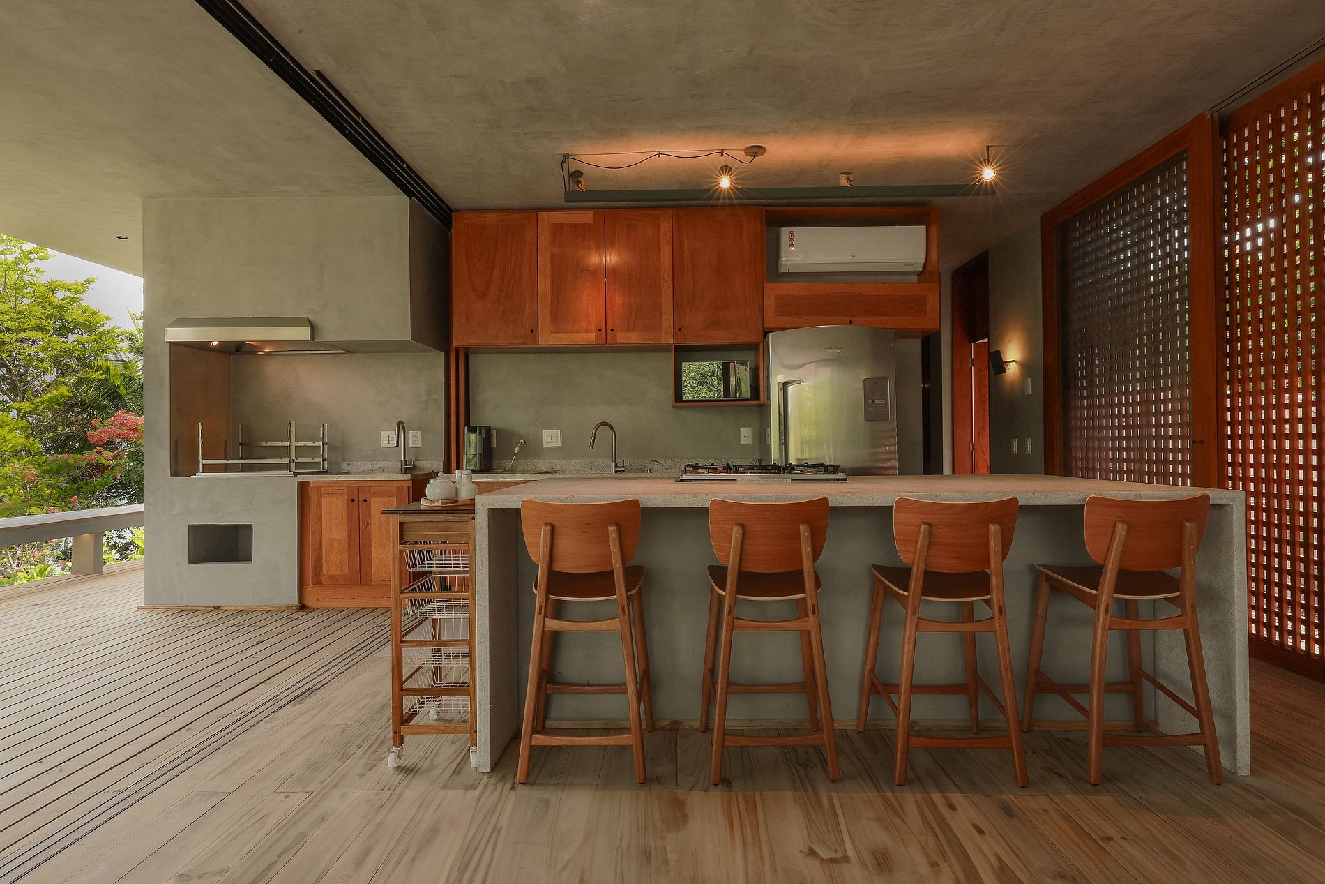 The elevated position of the house also gives you the advantage of enjoying a gentle and constant breeze. You will enjoy house service from the efficient and cheerful staff available 8h/day. The house's two staff can serve you breakfast and lunch on the large covered veranda, organize a barbecue with one of the best views in the region, or just prepare a caipirinha made with seriguela, cashew or cocoa from the region.