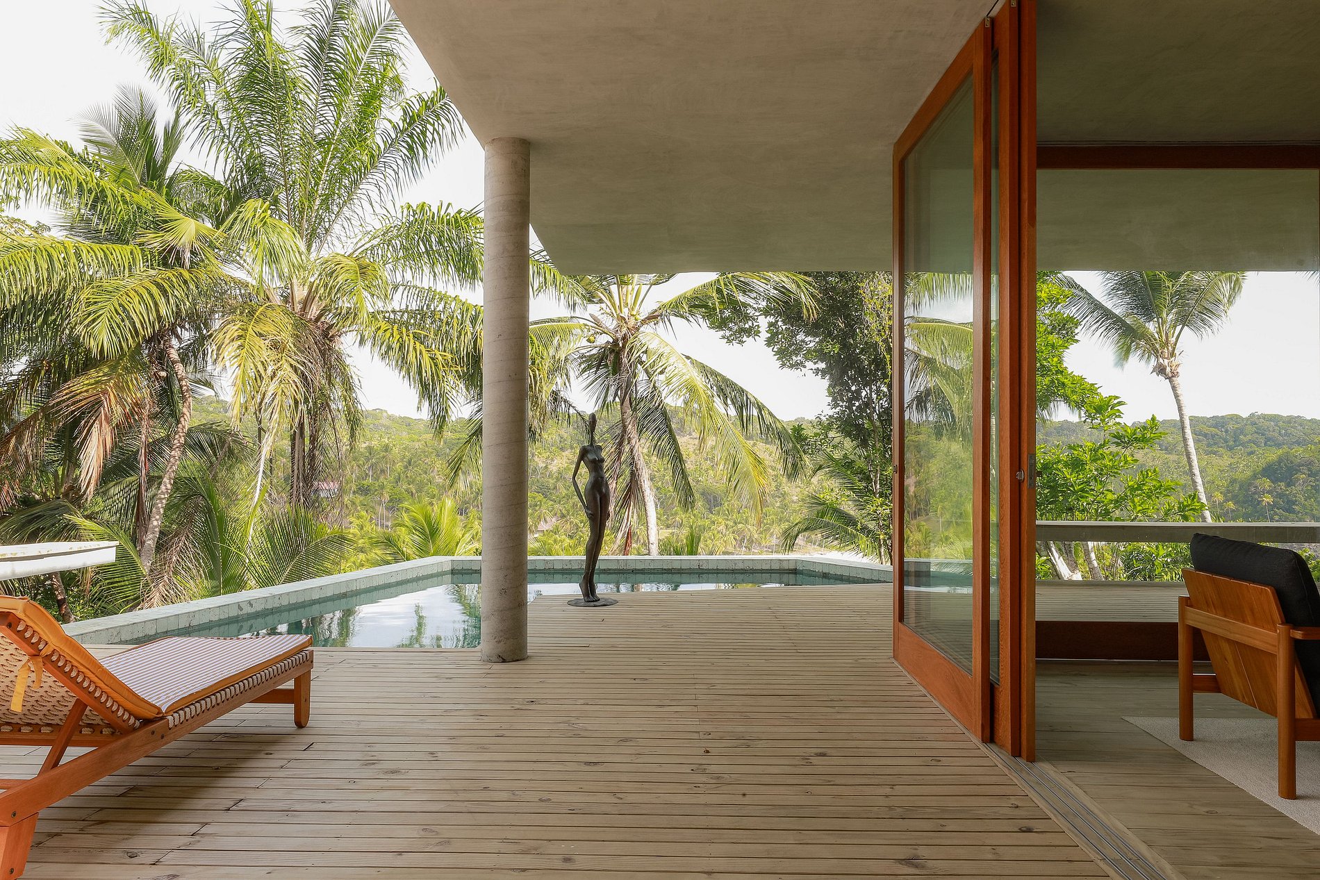 The elevated position of the house also gives you the advantage of enjoying a gentle and constant breeze. You will enjoy house service from the efficient and cheerful staff available 8h/day. The house's two staff can serve you breakfast and lunch on the large covered veranda, organize a barbecue with one of the best views in the region, or just prepare a caipirinha made with seriguela, cashew or cocoa from the region.