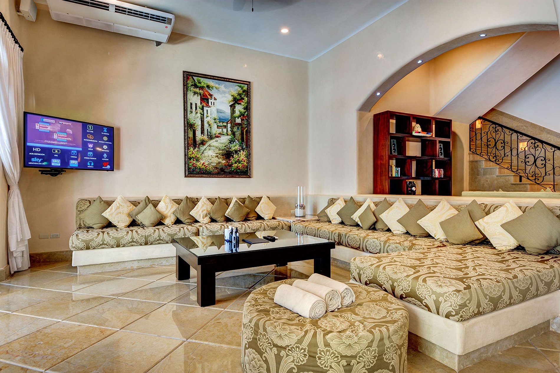 On the beautiful sandy beaches of Soliman Bay sits, this 6 bedroom Mexican hacienda-style villa with a touch of Italian design. This villa consists of 5 bedrooms in the main house and 1 bedroom in a separate guest house; all with their own ensuite marble bathrooms.