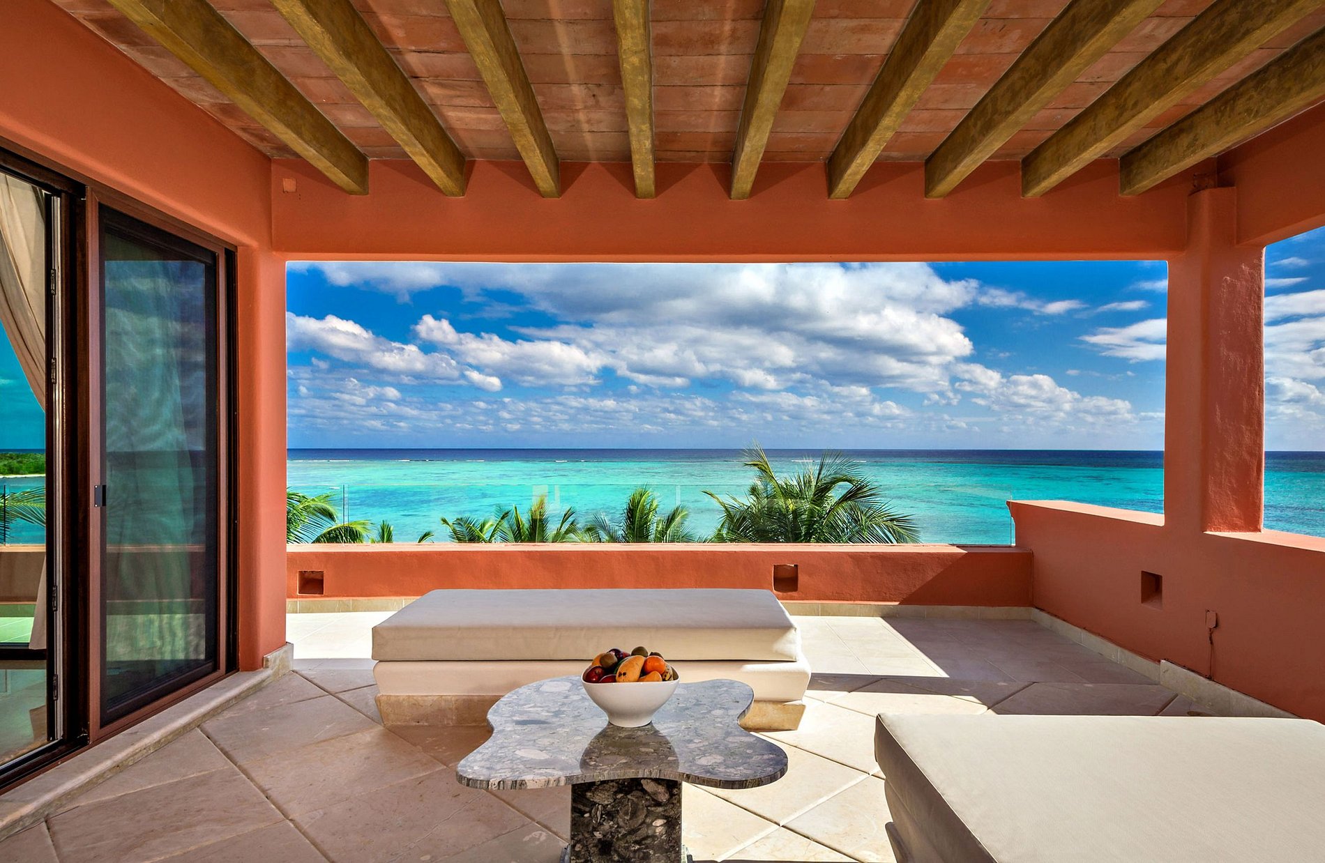 On the beautiful sandy beaches of Soliman Bay sits, this 6 bedroom Mexican hacienda-style villa with a touch of Italian design. This villa consists of 5 bedrooms in the main house and 1 bedroom in a separate guest house; all with their own ensuite marble bathrooms.