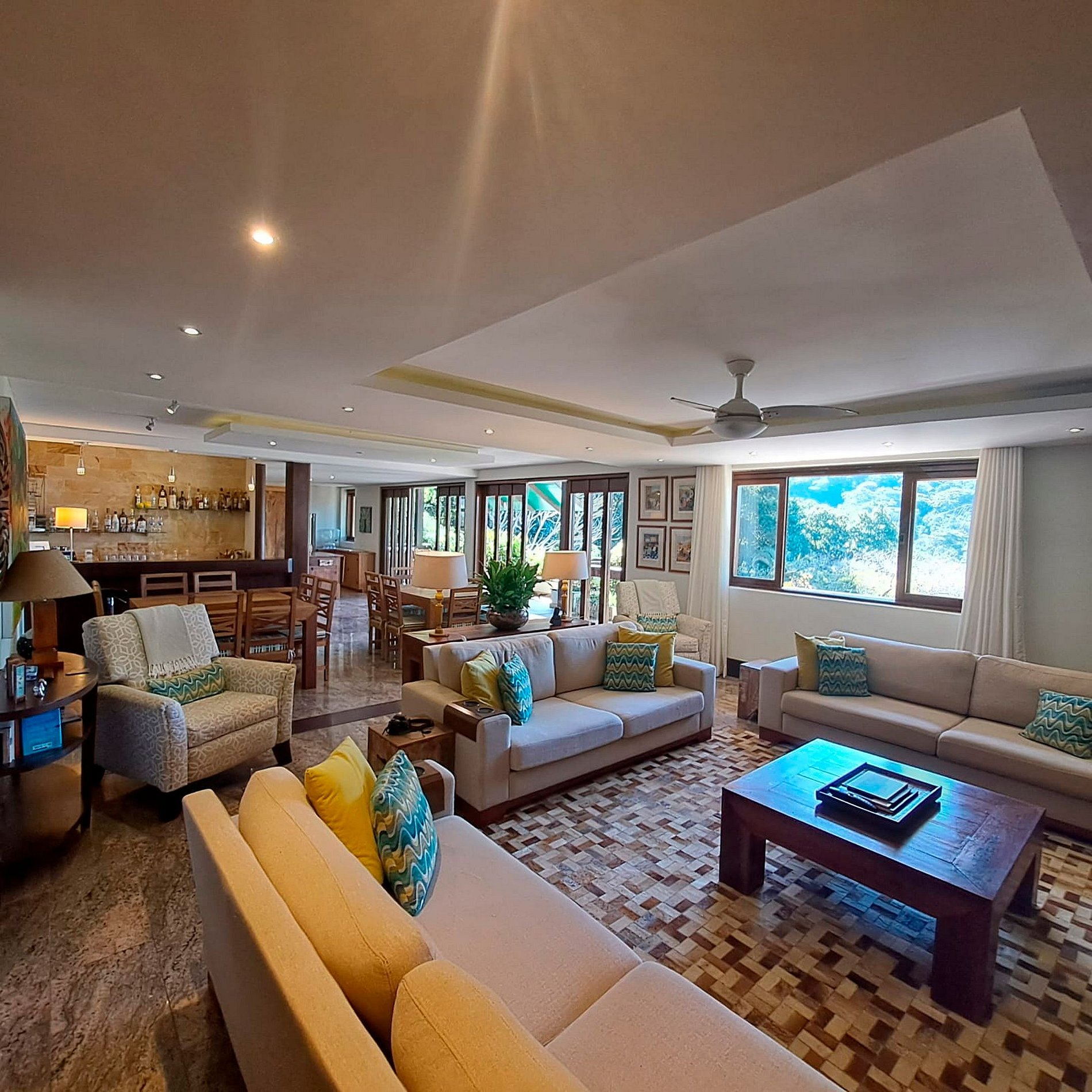 Nestled in the heart of Tijuca Forest, this beautiful vacation home offers breathtaking views of the natural surroundings and is just a short distance away from all the main attractions and beaches. This three-story mansion features six bedrooms, providing ample space for families or groups of friends.