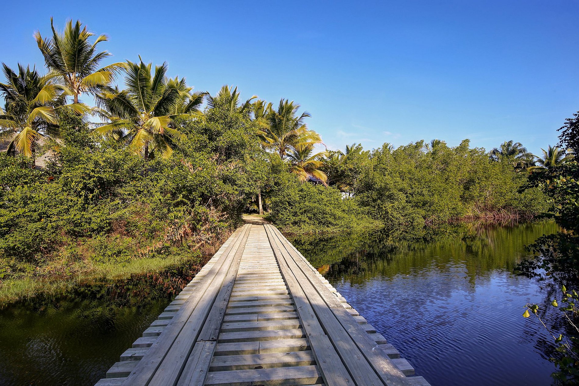Villa with an exclusive access, crossing a wooden bridge over a lagoon of the river Rio da Barra. Environment of untouched nature, construction in harmony with it, that fill the spaces and senses.
