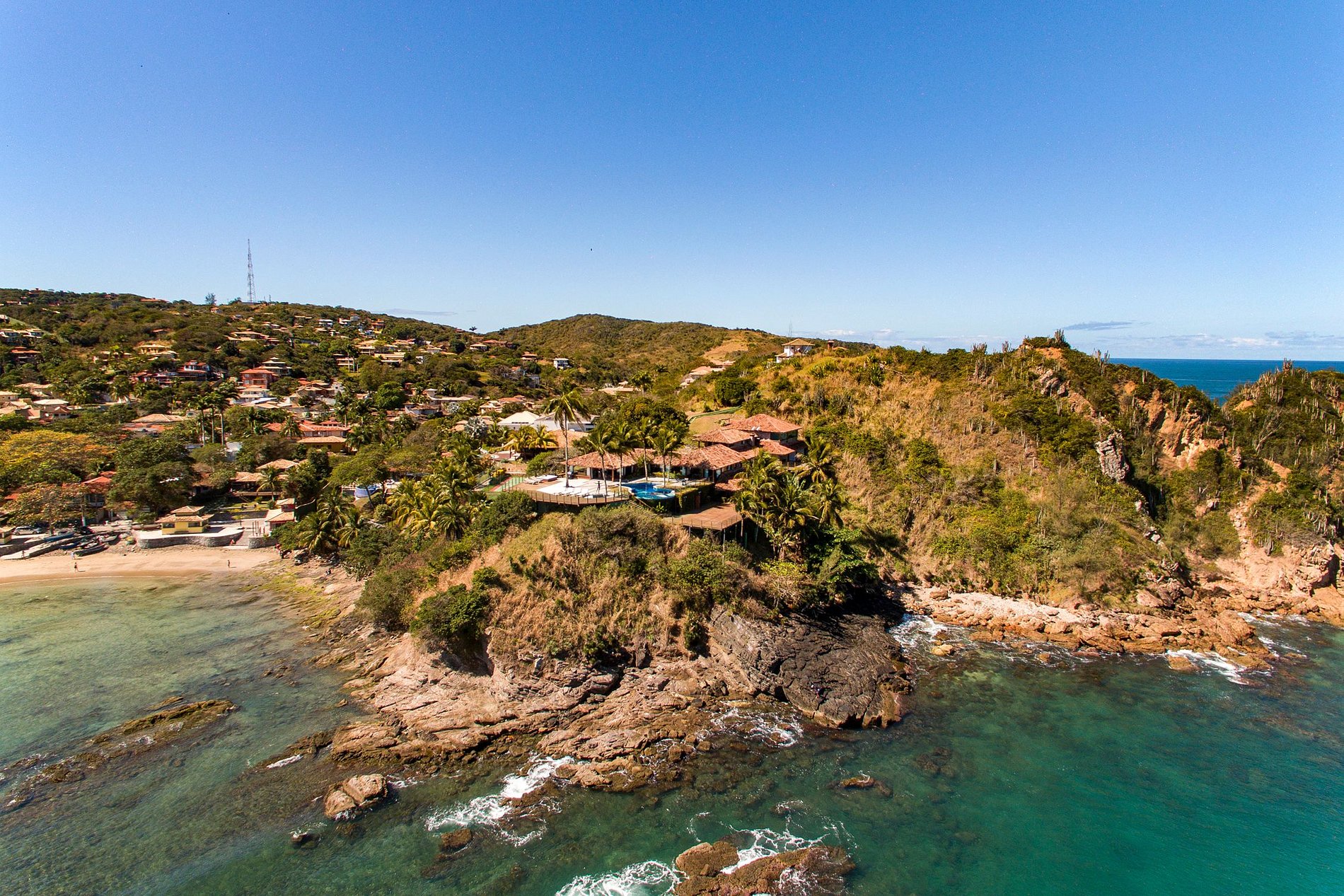 A fabulous luxury mansion with 5 suites located high on a rocky beachfront formation in the Ferradurinha gated community.