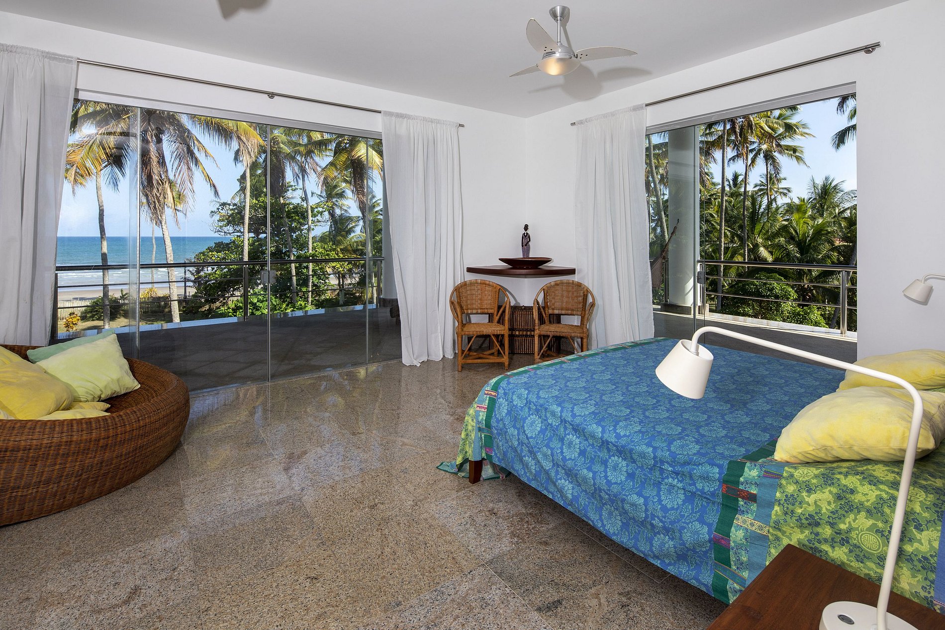 The upper floor where the TV room is located, has 4 suites including the Master suite with sea view, accompanied by its large office, has a large balcony / terrace, present all around the house.Its ones of the many relaxing places of this house, ideal to relax in harmony with the sea, the nature and the beautiful garden, enjoying the refreshing sea breeze, in a hammock or comfortable sun loungers.
