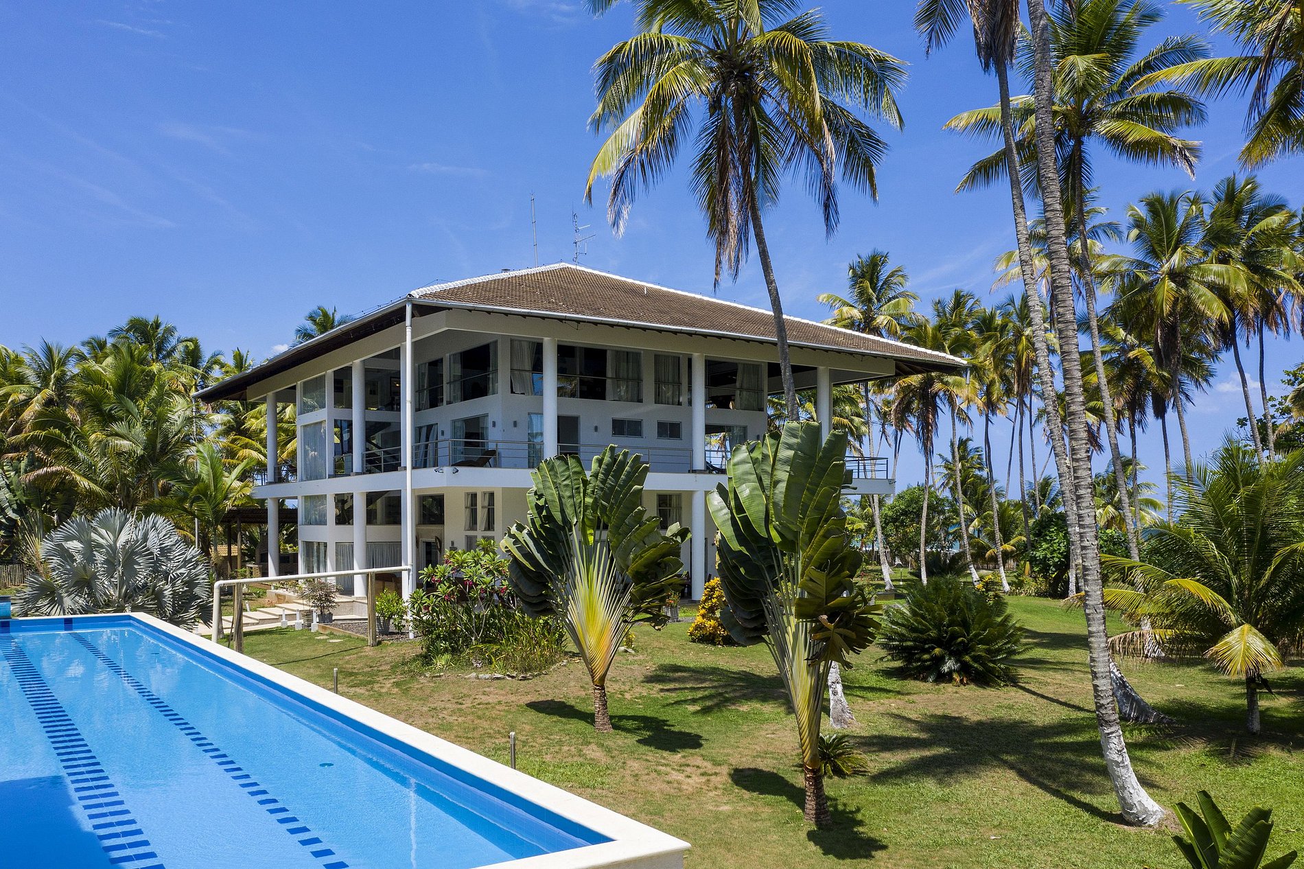 Modern beach villa in a spectacular location. Beautiful villa of 1.200m2 in a coconut grove of 24.000 m2, close to abeautiful and very quiet beach in Serra Grande, between Ilheus and Itacaré.