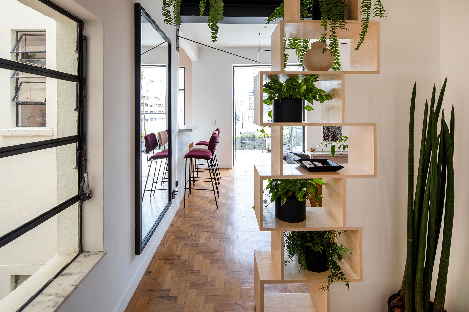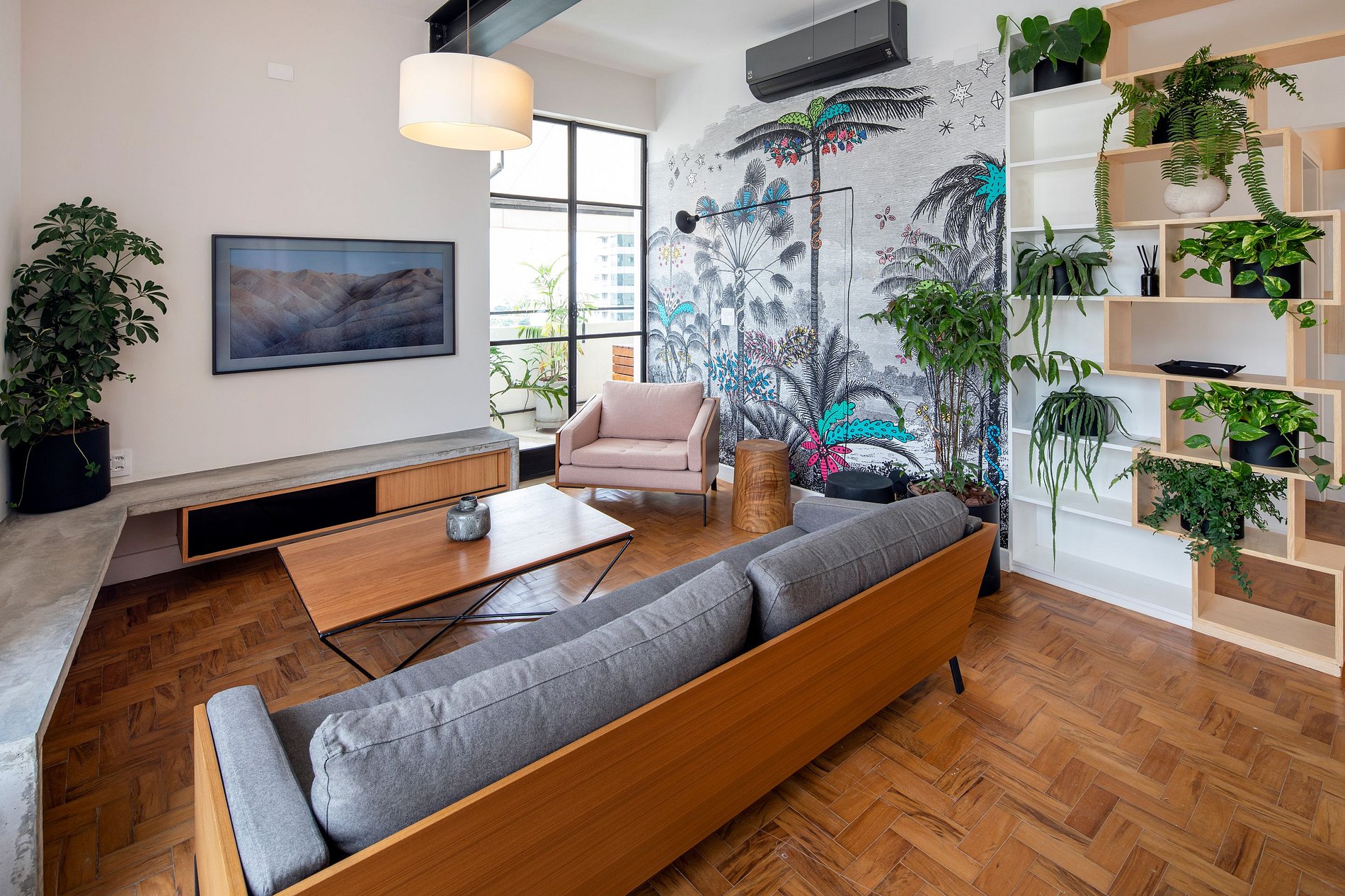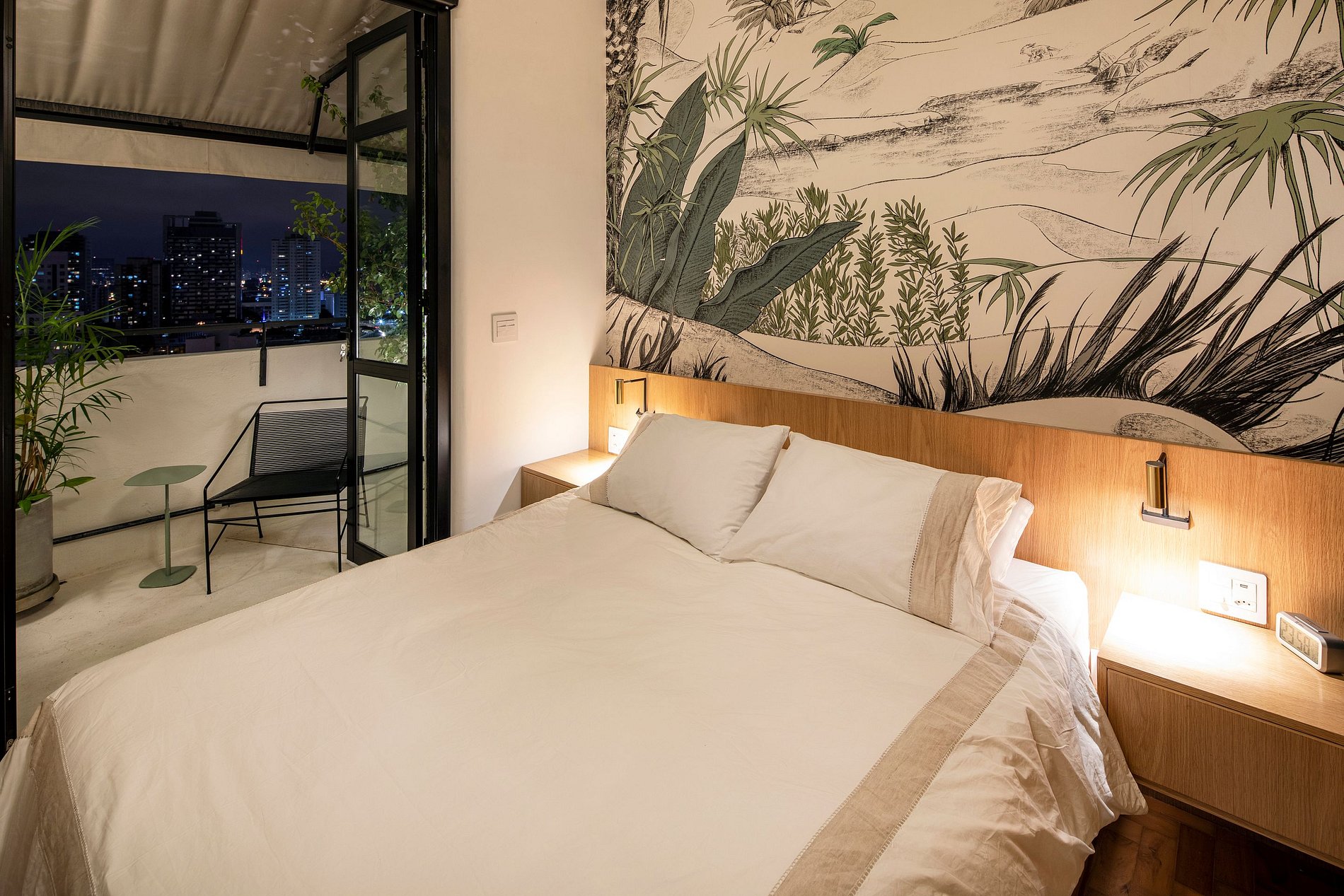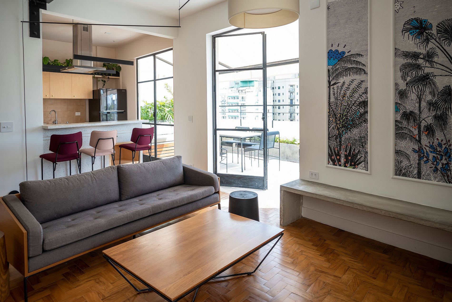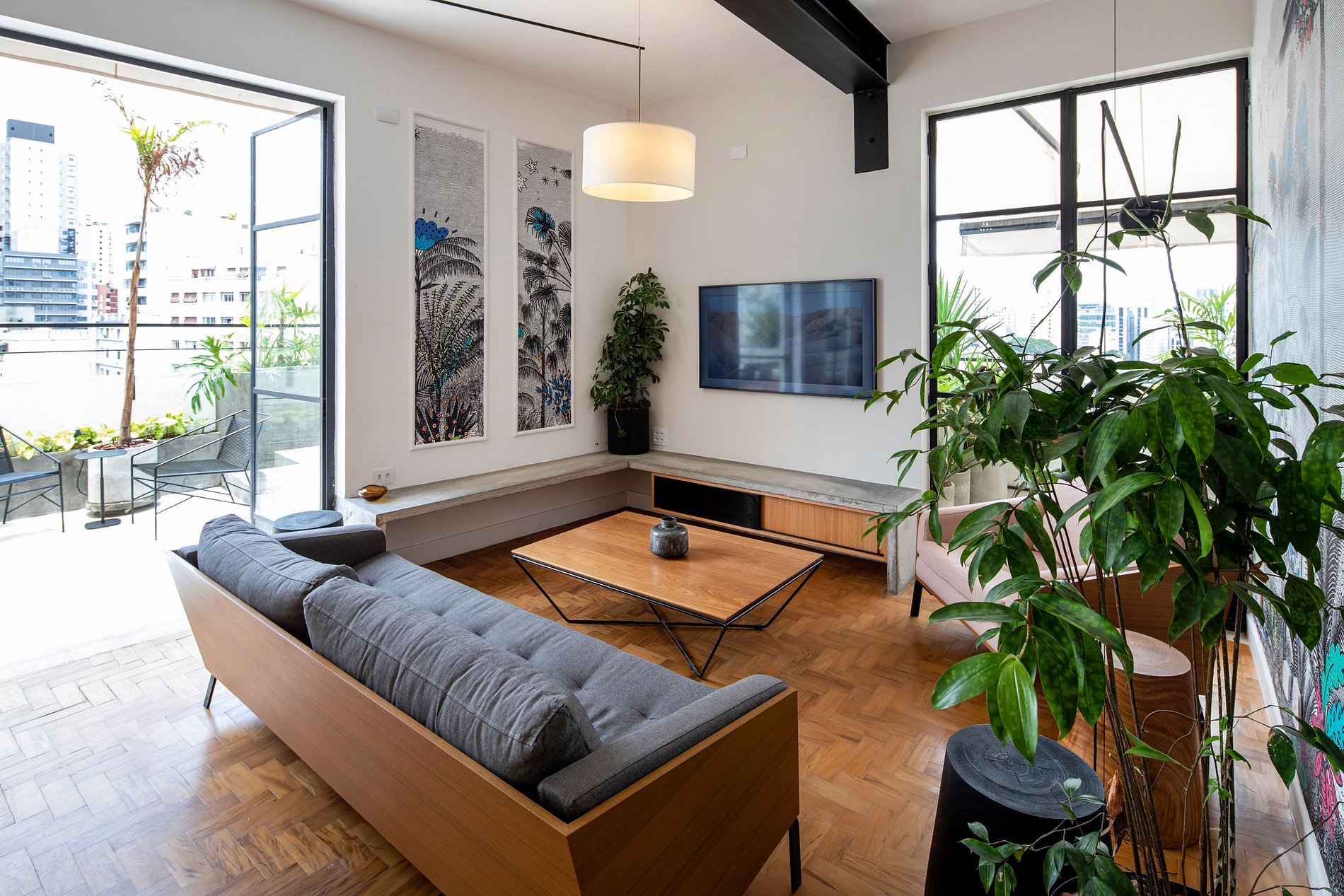 The 103 m2 property features a contemporary design and blends in with the greenery of the plants on the terrace, where you have wonderful views of the city.