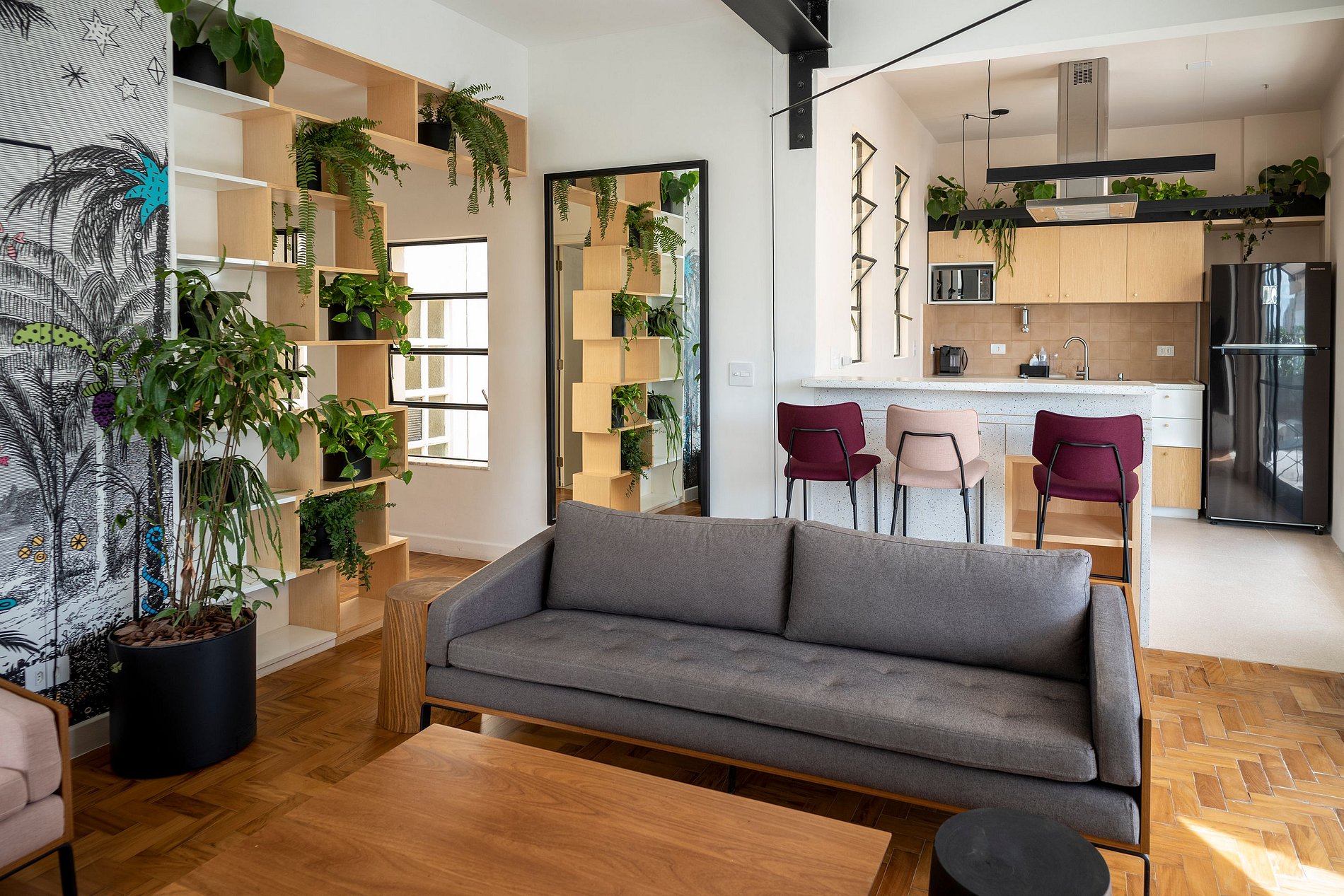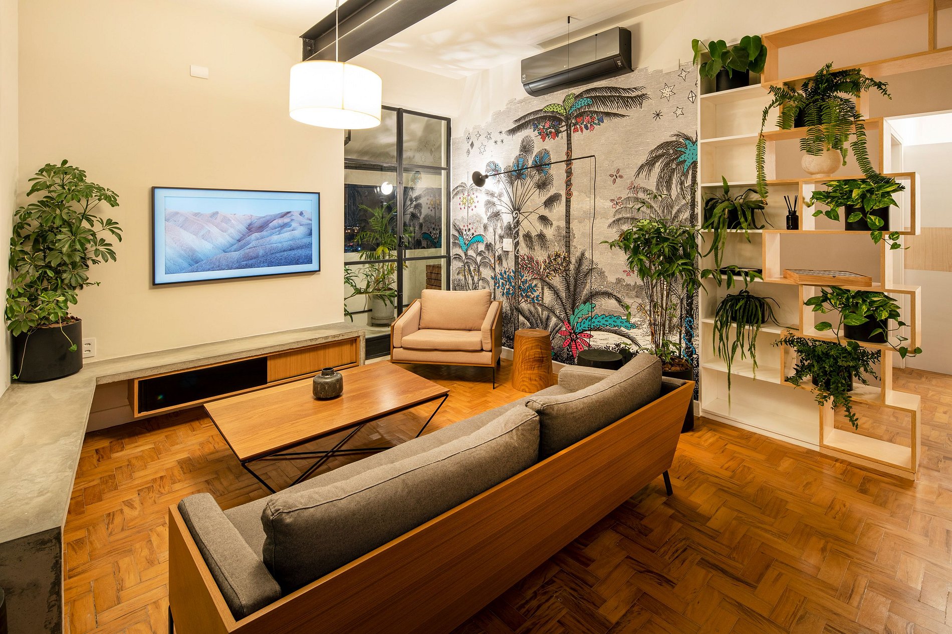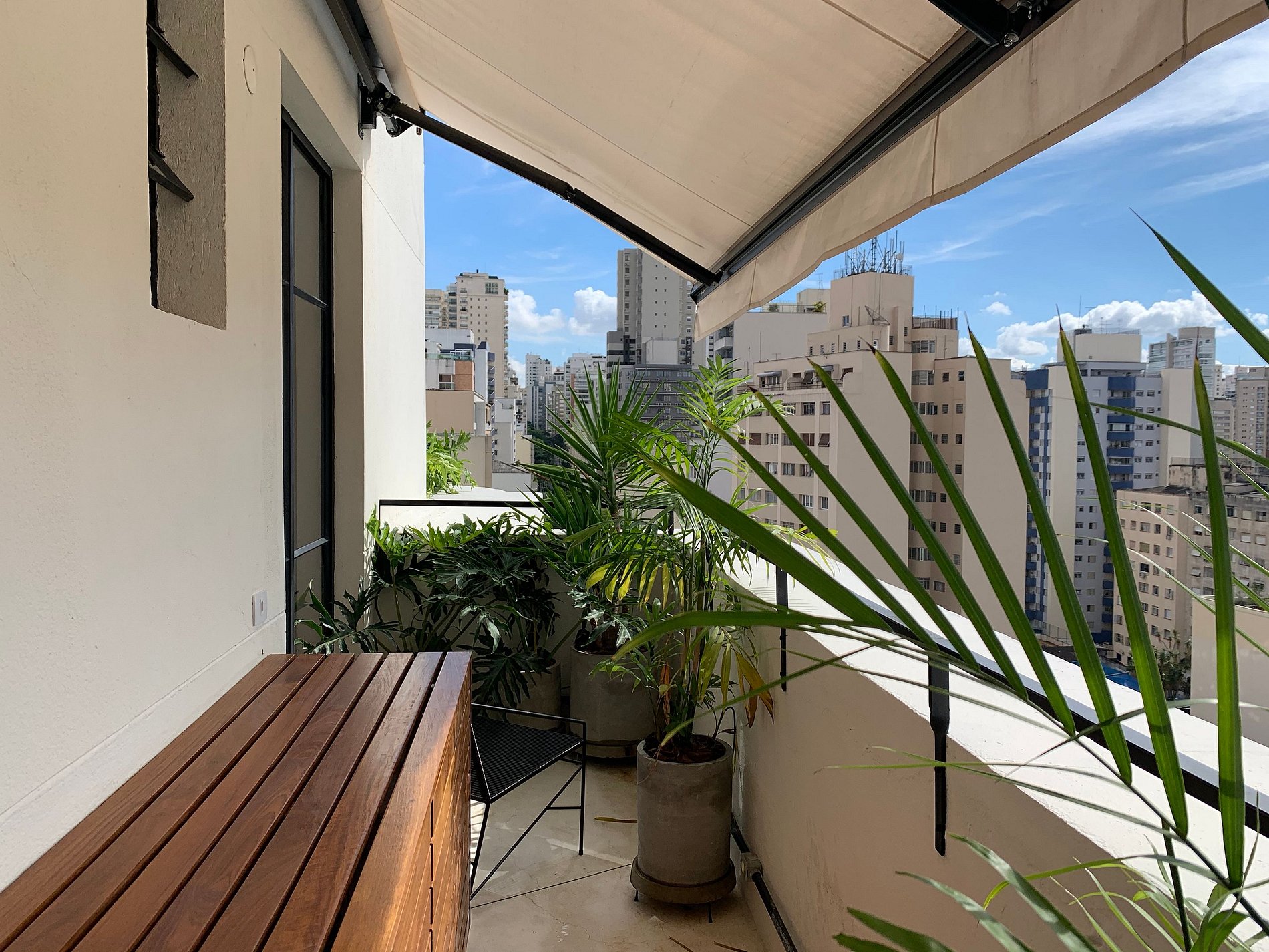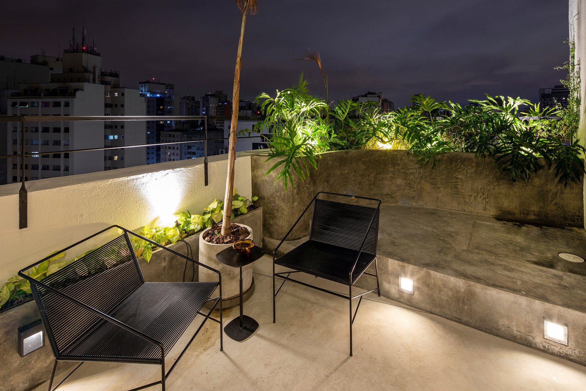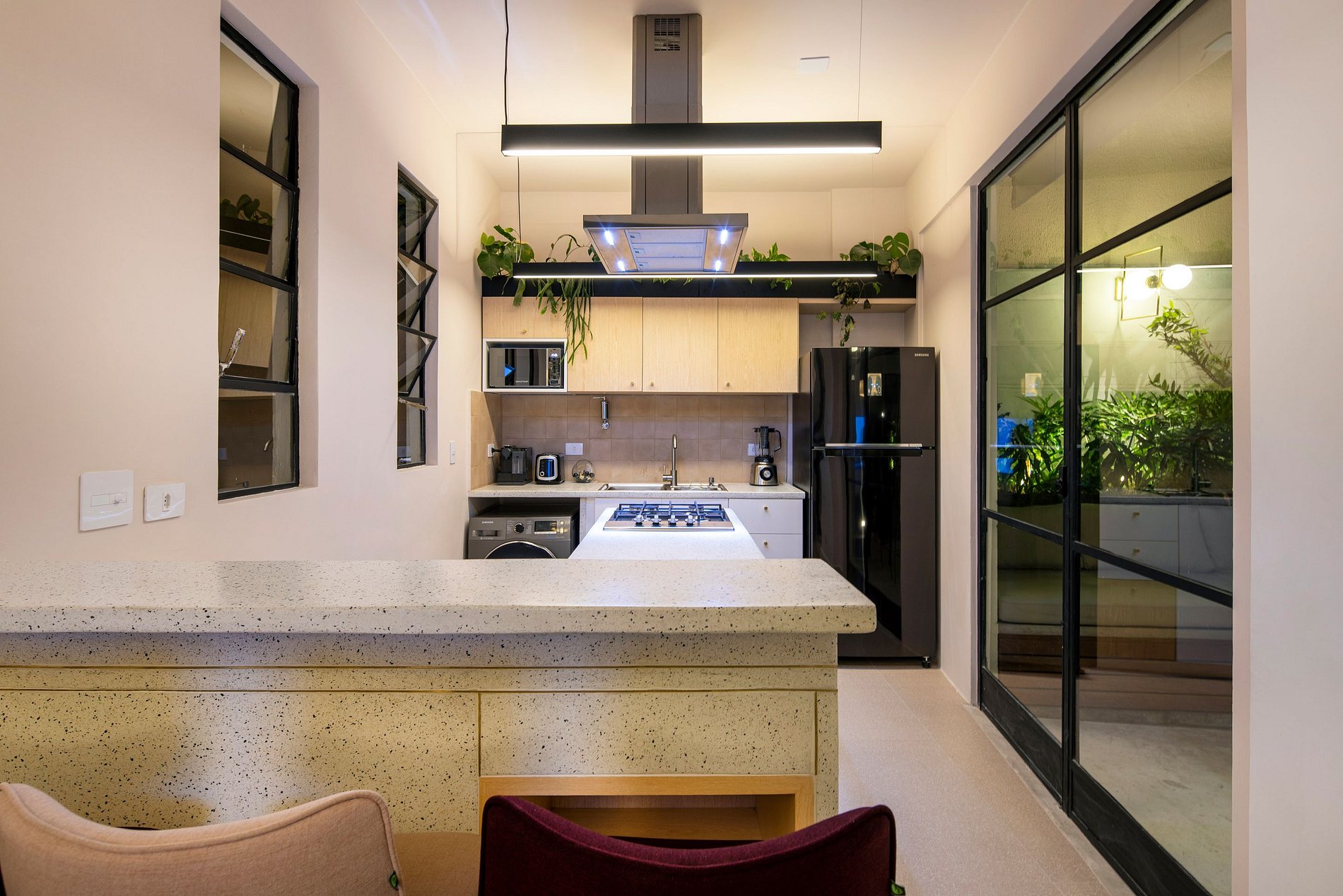 The 103 m2 property features a contemporary design and blends in with the greenery of the plants on the terrace, where you have wonderful views of the city.