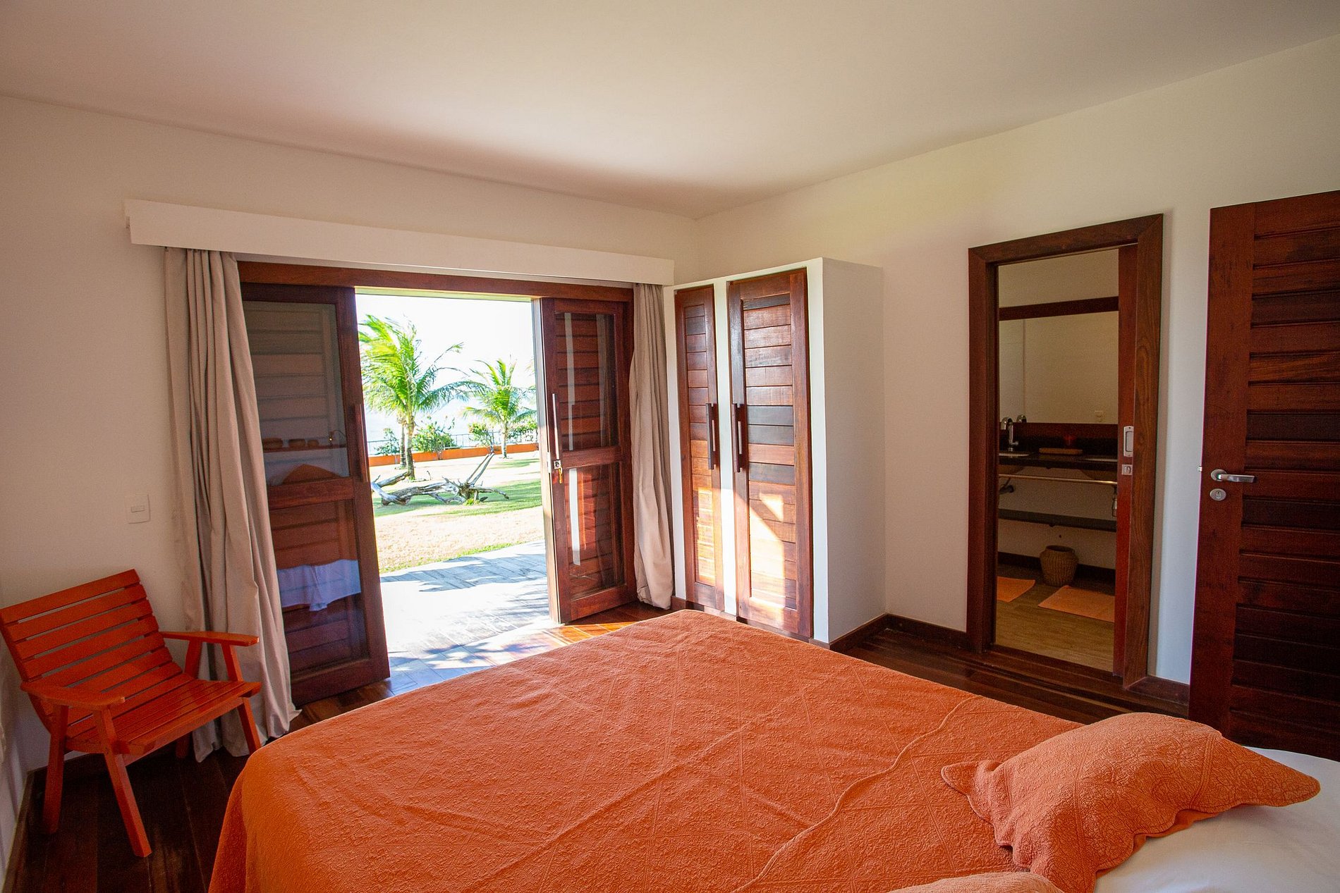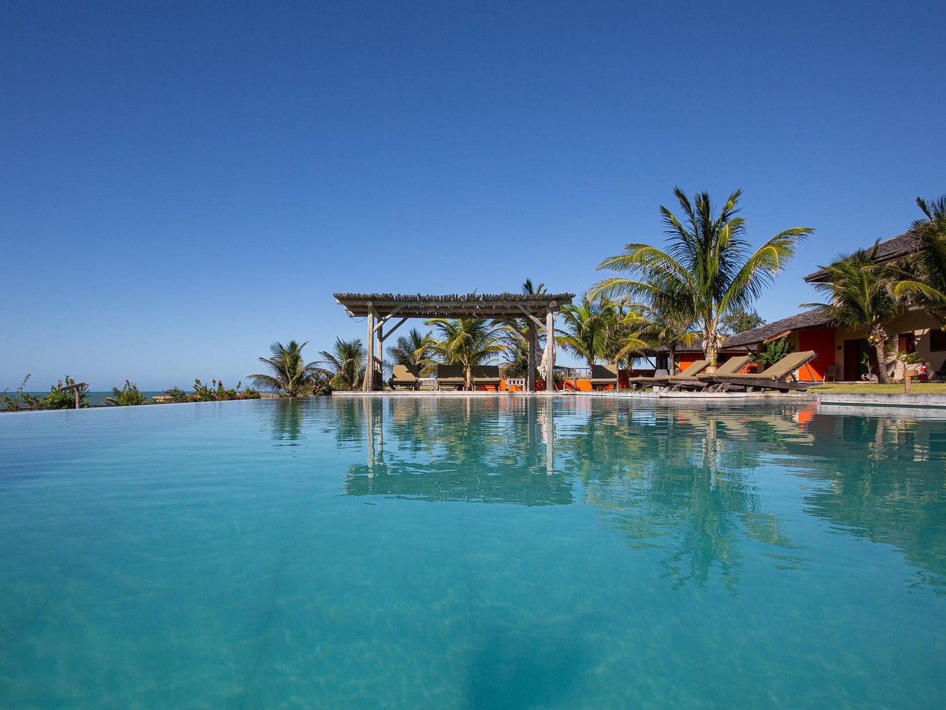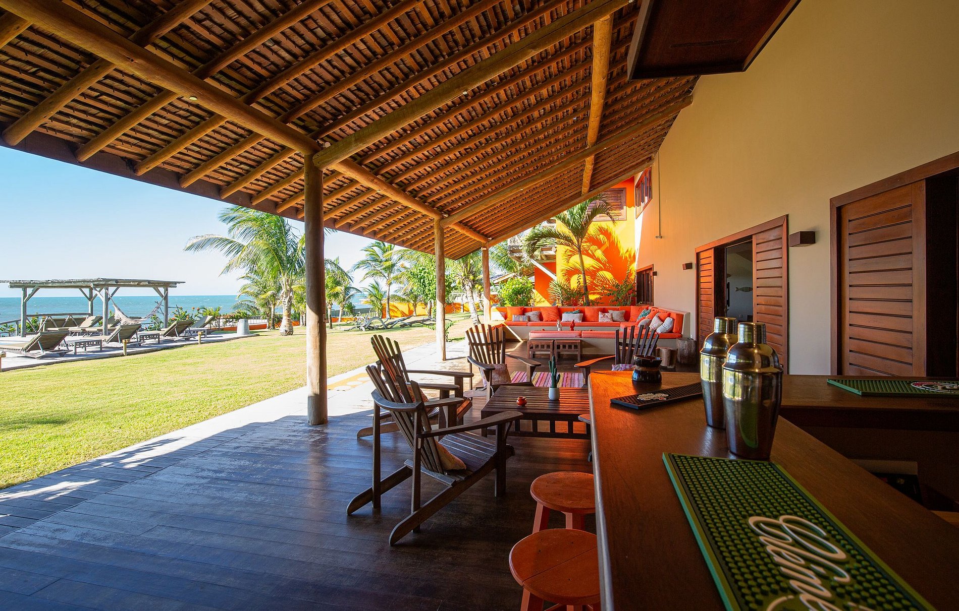 The house has 600m² of built area, starting with the beautiful living room furnished with all wooden furniture and decorated with local crafts. The room has access to the living room outside the house that has several hammocks for rest and a beautiful garden with a large swimming pool with comfortable sun loungers.