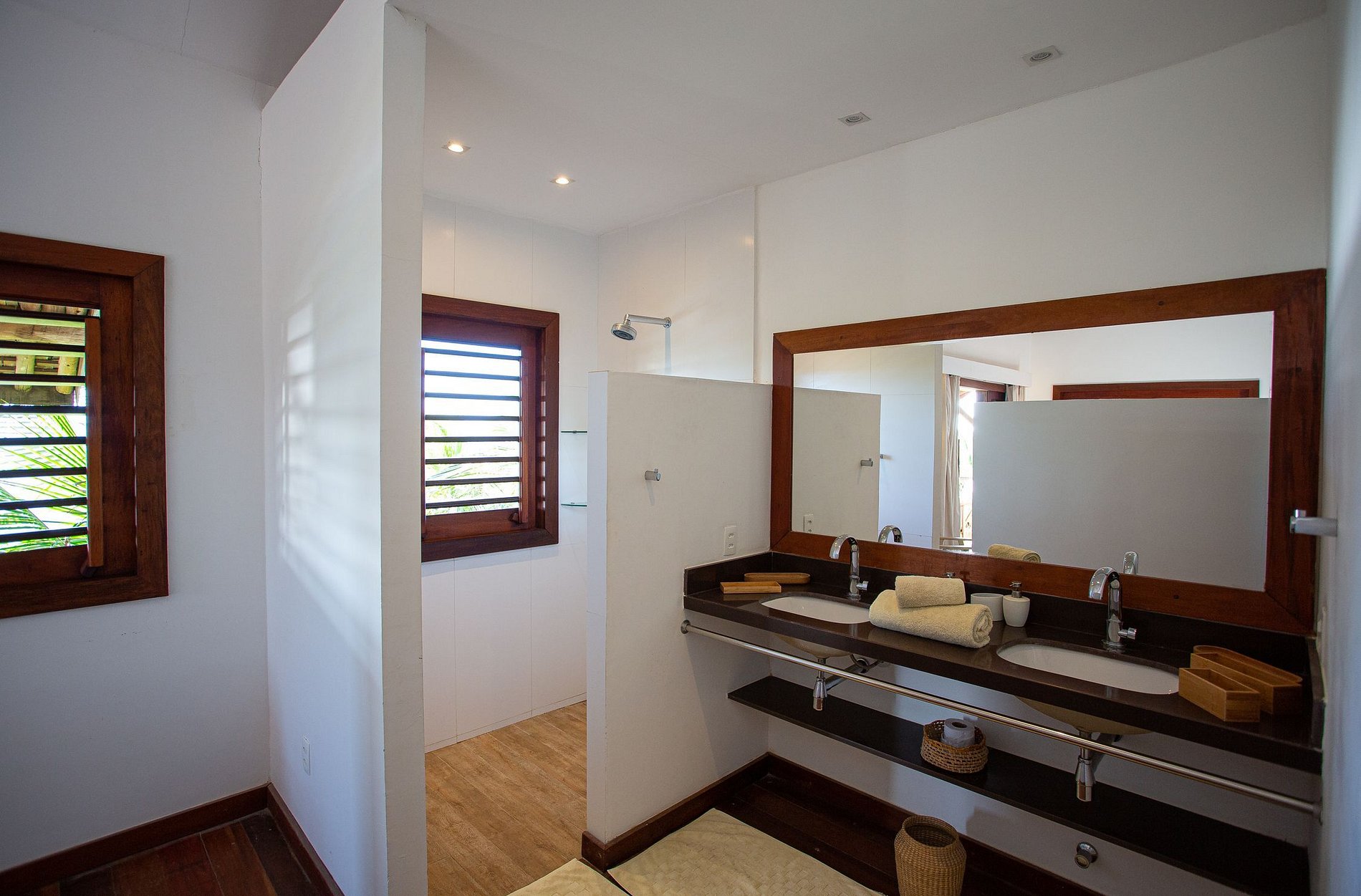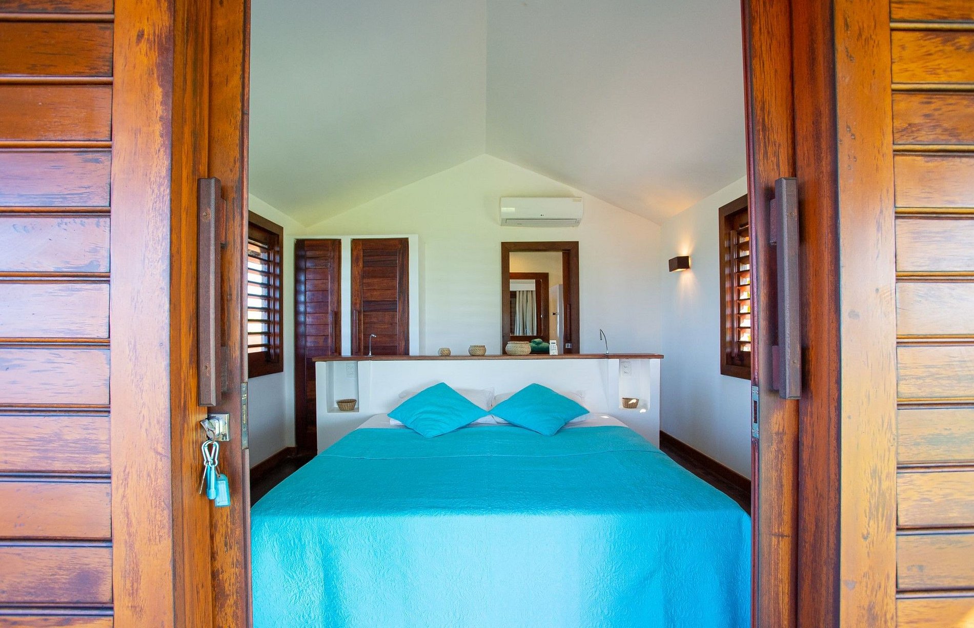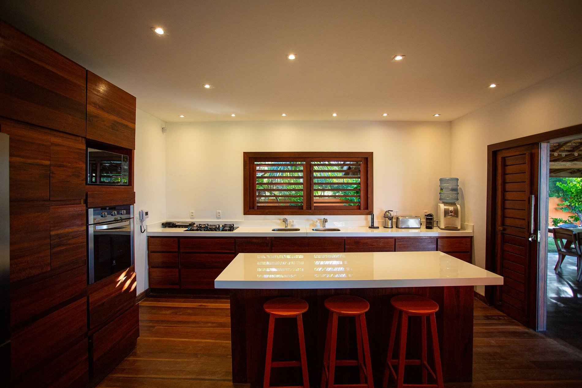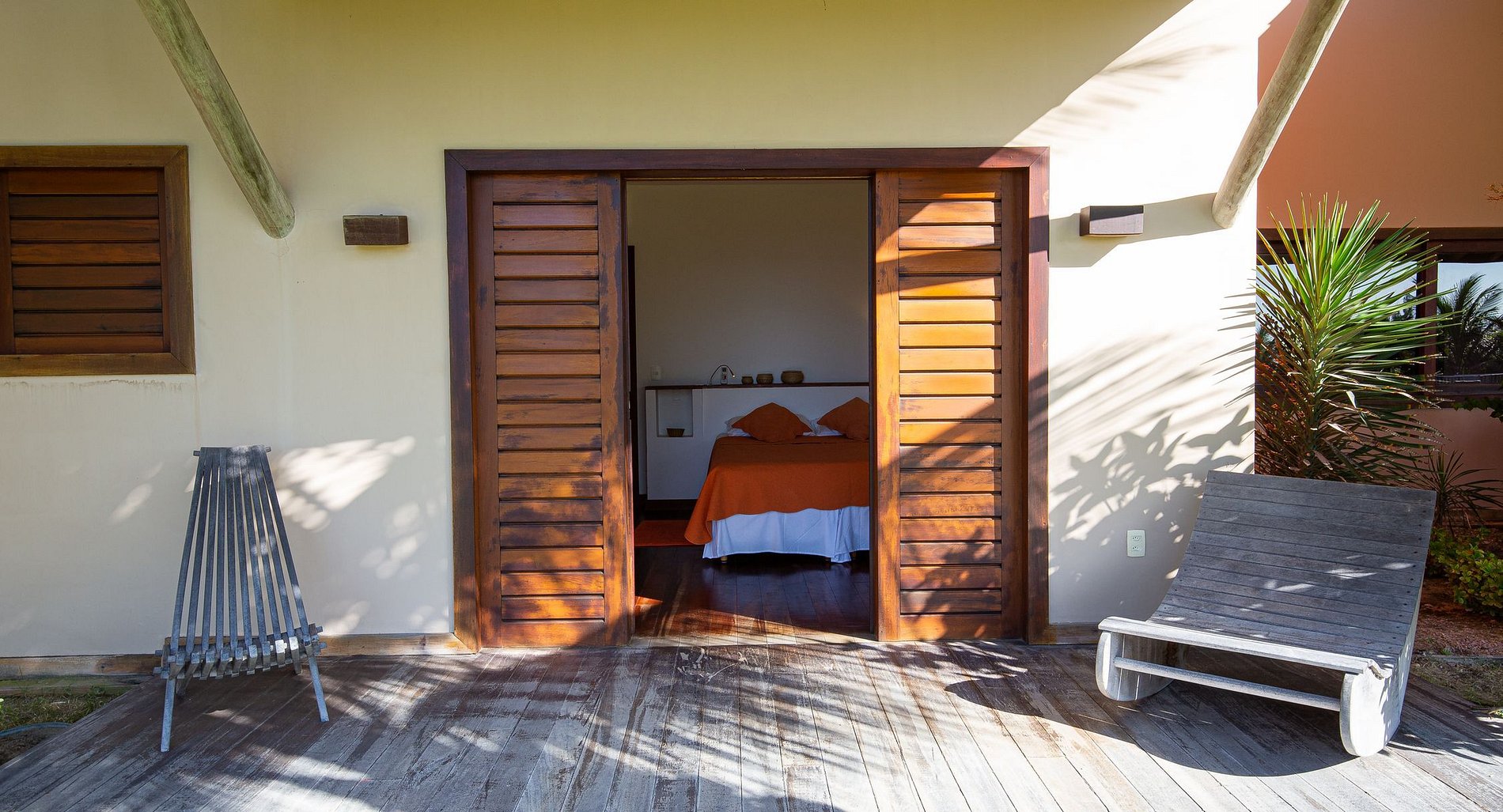 The house has 600m² of built area, starting with the beautiful living room furnished with all wooden furniture and decorated with local crafts. The room has access to the living room outside the house that has several hammocks for rest and a beautiful garden with a large swimming pool with comfortable sun loungers.