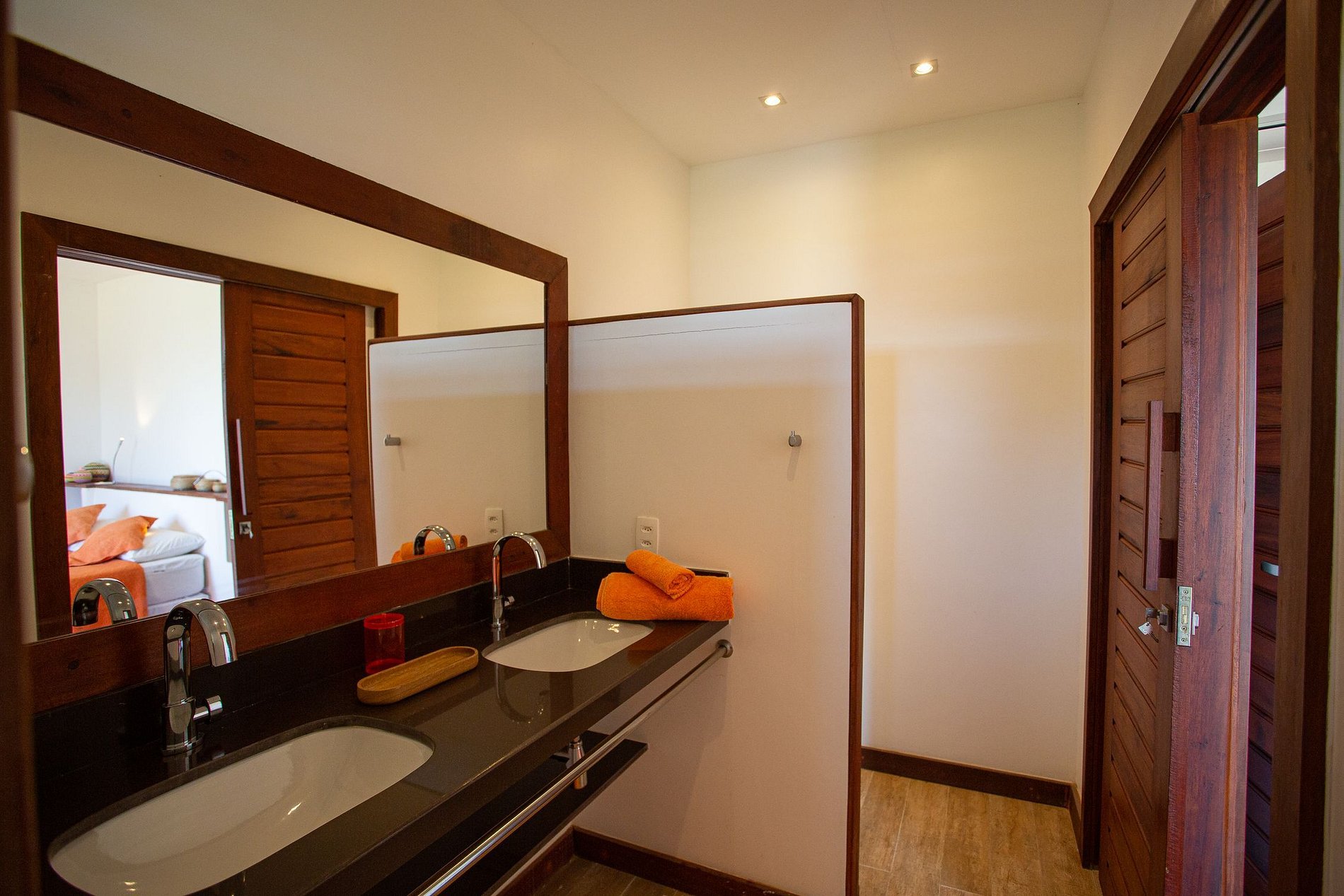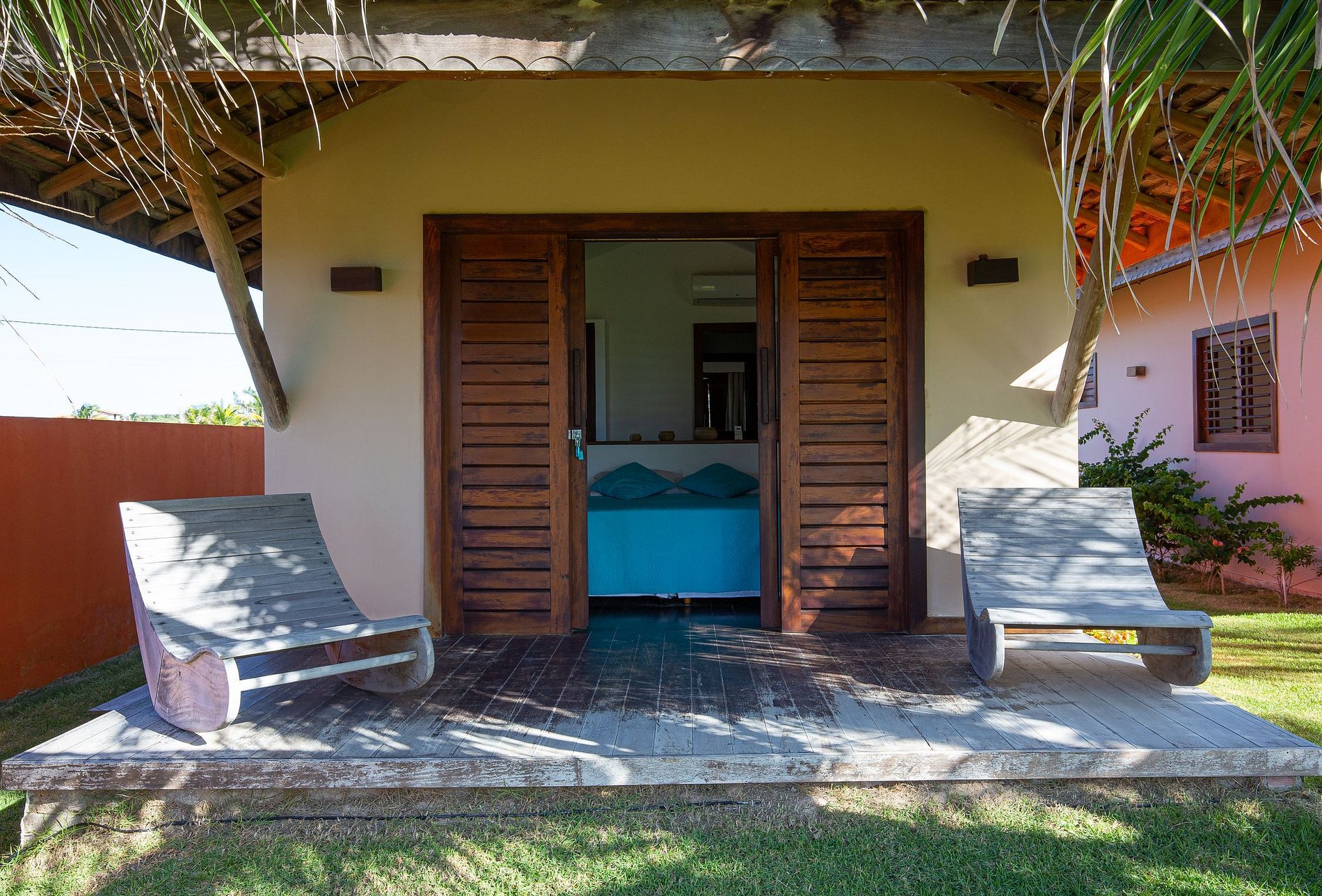 The house has 600m² of built area, starting with the beautiful living room furnished with all wooden furniture and decorated with local crafts. The room has access to the living room outside the house that has several hammocks for rest and a beautiful garden with a large swimming pool with comfortable sun loungers.