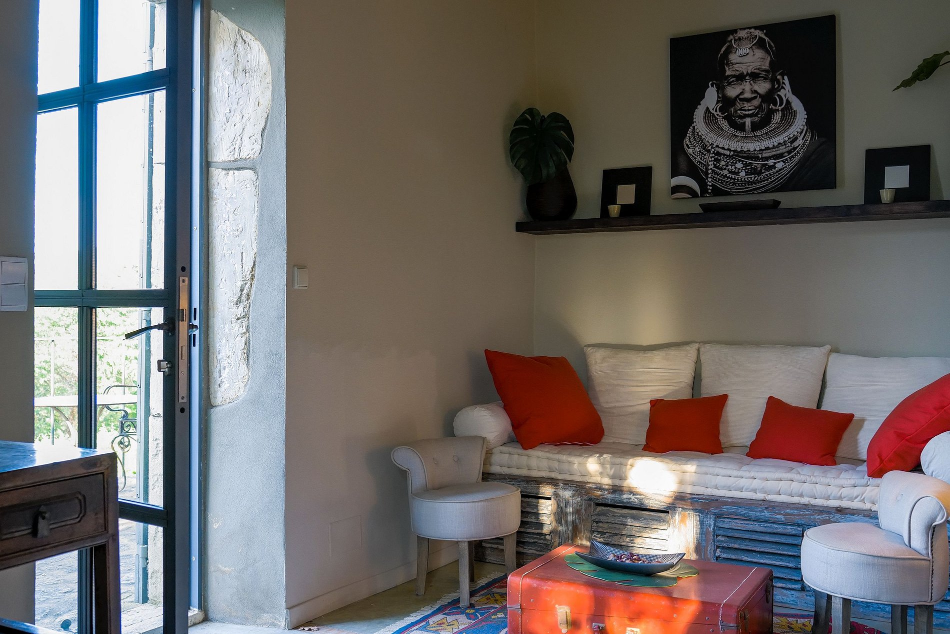 - Suite: king size bed or 2 single beds, bathroom, African-style lounge area, independent entrance overlooking the vines