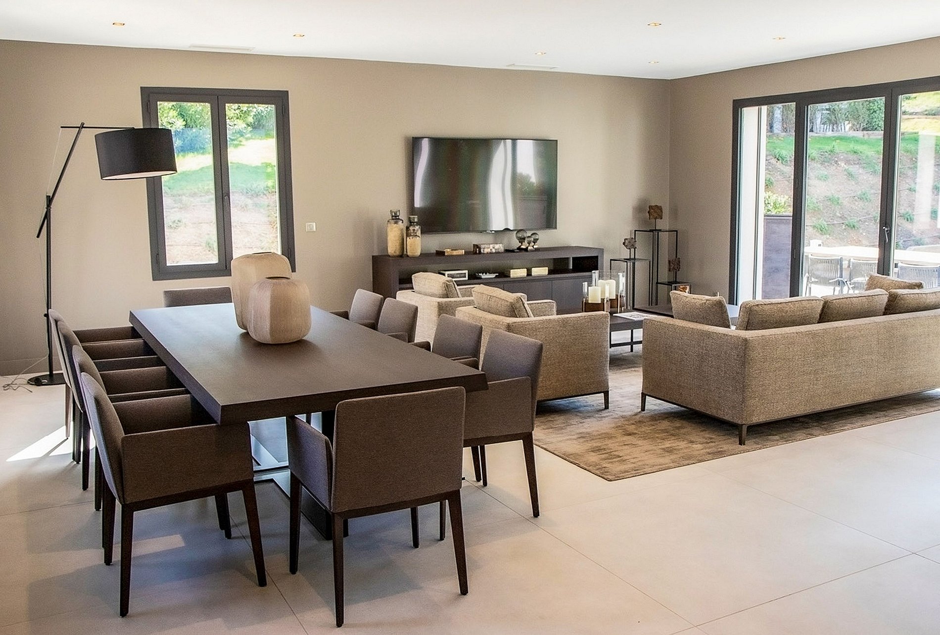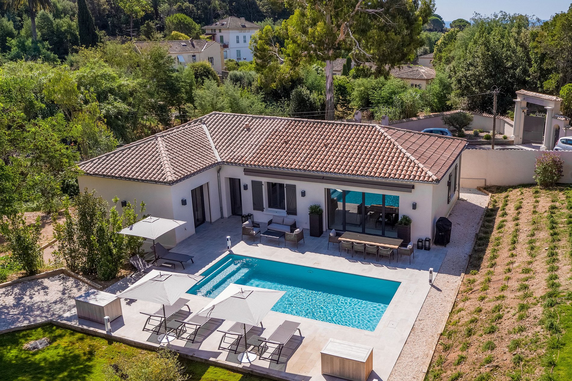 This Villa features 320m2 of indoor space, two residences with a rosemary-lined heated swimming pool and a park with alleys of palms and olive trees offering a quiet and perfect stay, with complete discretion.