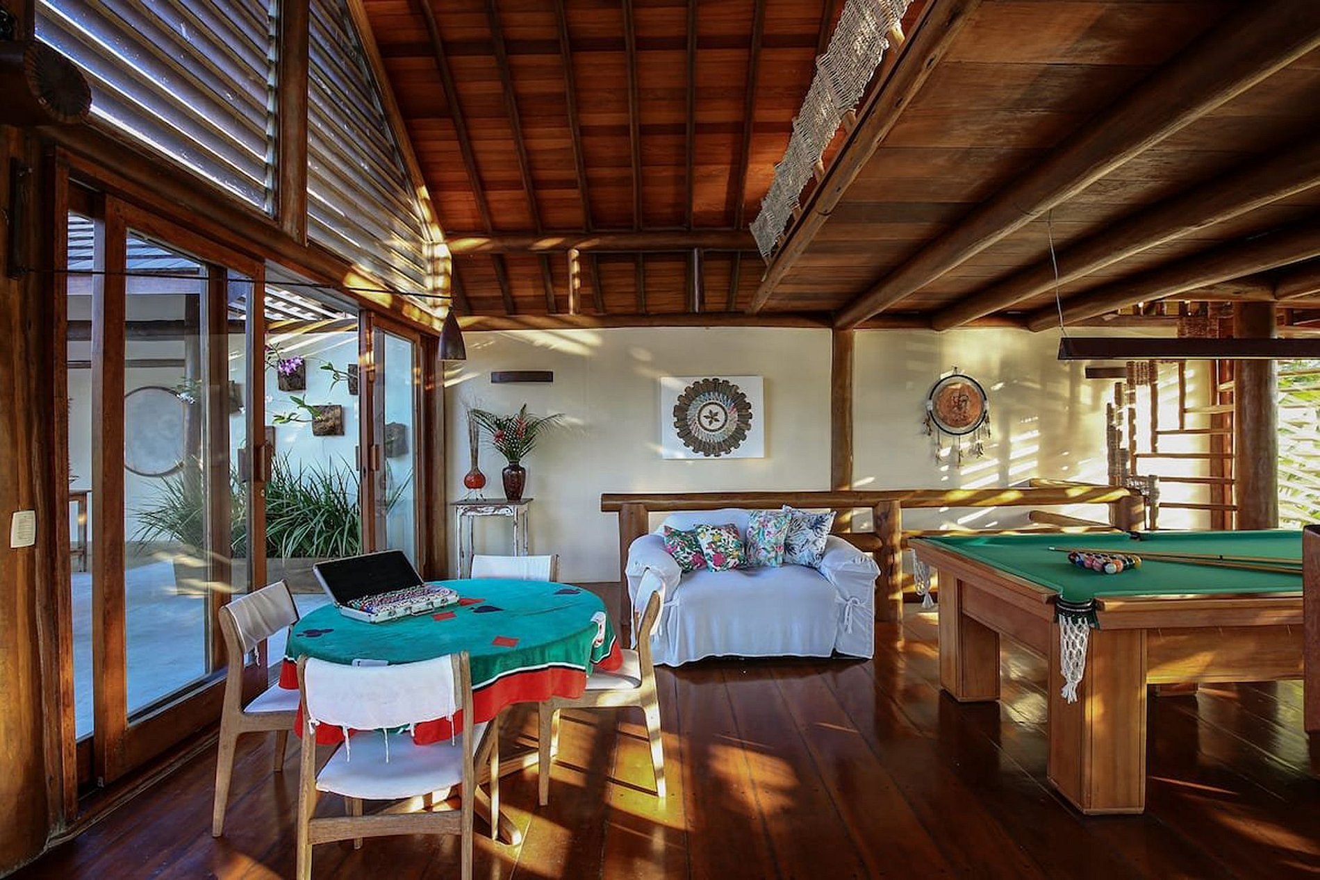 All rooms of the villa are very open and amplious designed. A lot of tropical wood is integrated in the building, which is contributing to a feeling of comfort and well being. The chic and cozy dinning areas are offering enough space for big families or a large group of friends.