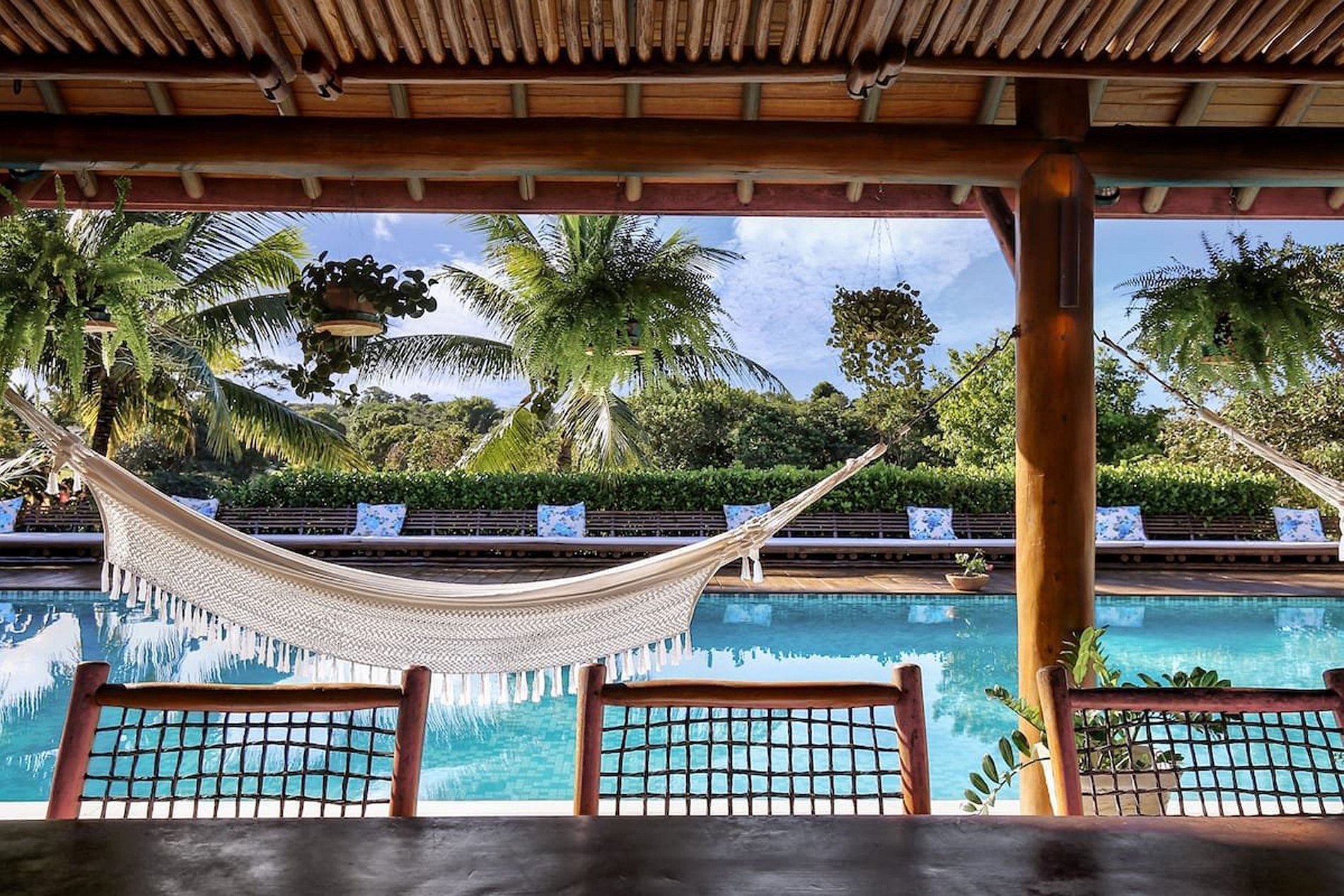 The immense swimming pool, the hammocks under a tropical sundeck and the big palm trees emerging from the exotical vegetation of the garden will make you let forget all the stress and worries of everyday life immediately.