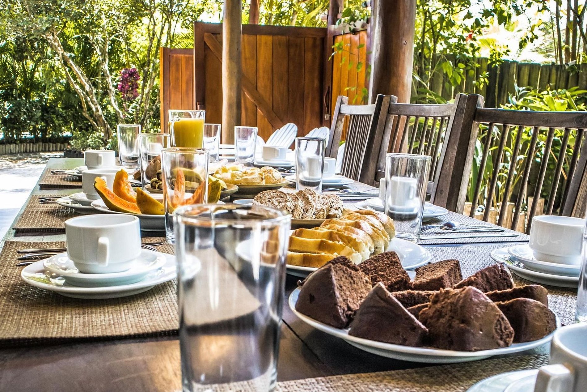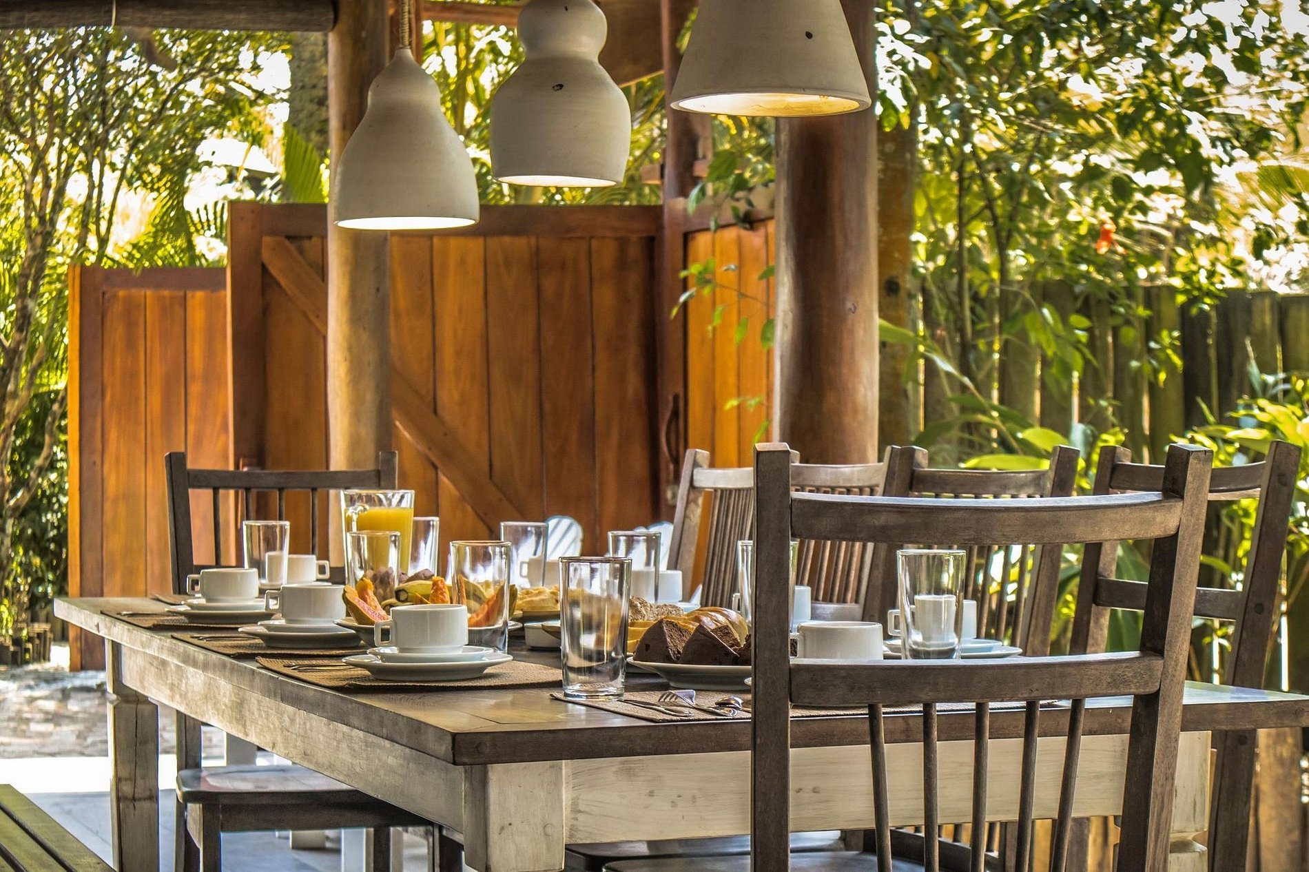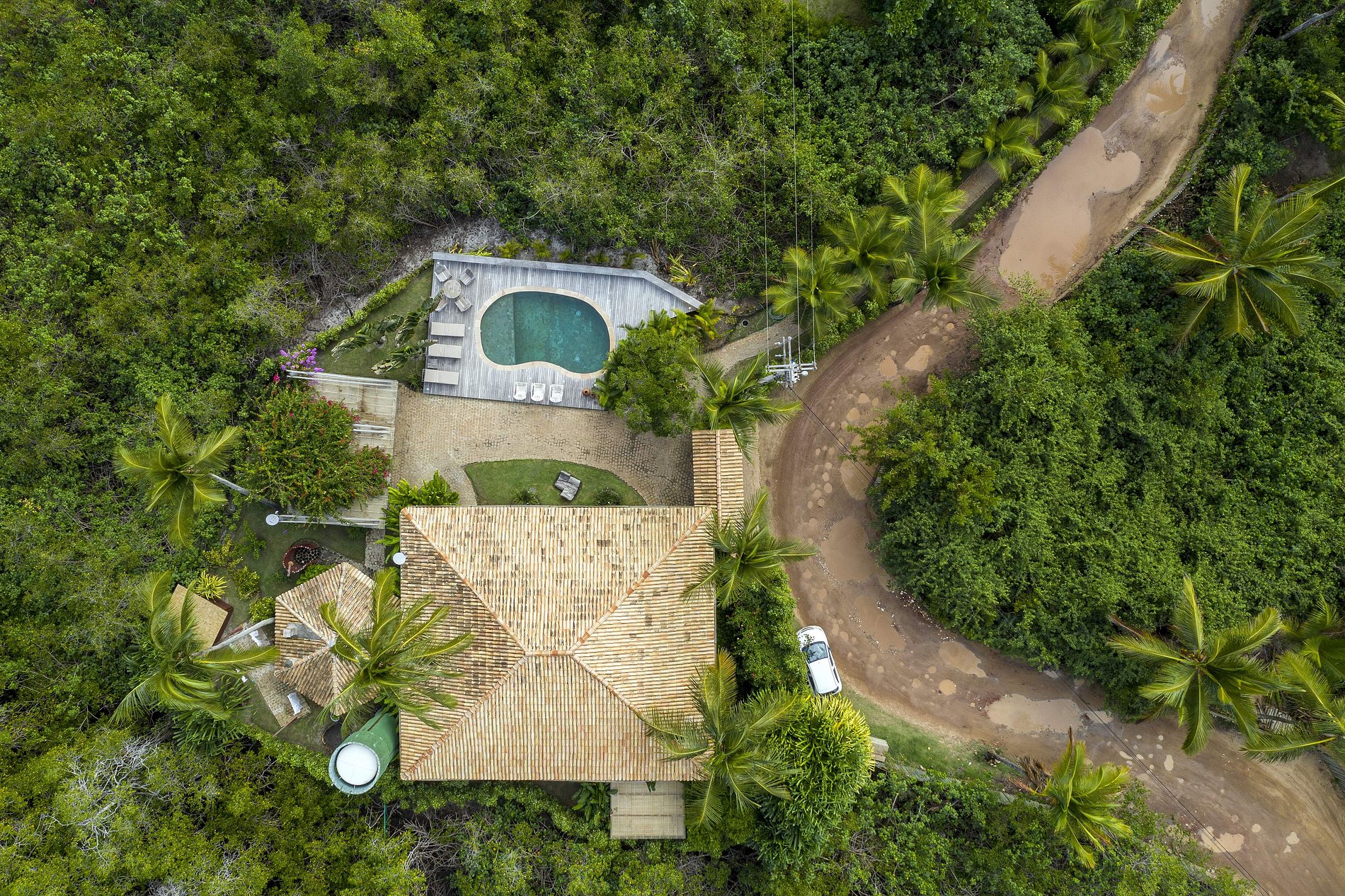 Next to the mangrove is the curved pool and an invitation to enjoy the sunny days of southern Bahia. The gourmet area and terraces around the house are more pleasant places for privileged moments with family and friends.