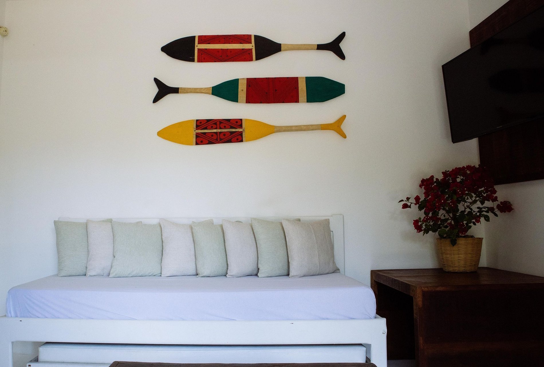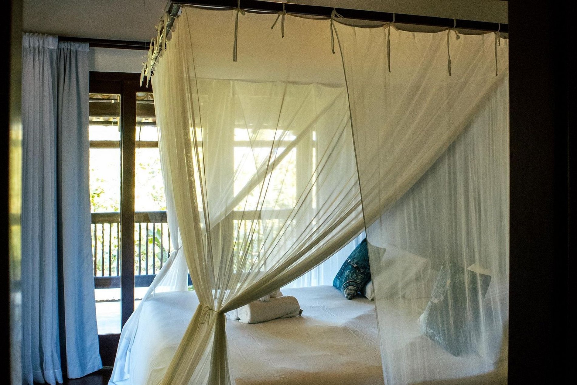 Suite 2: Two single beds (can be joined), musketeer, air conditioning, ceiling fan, TV, minibar, balcony with hammock, sea view and mangrove. (and extra bed)