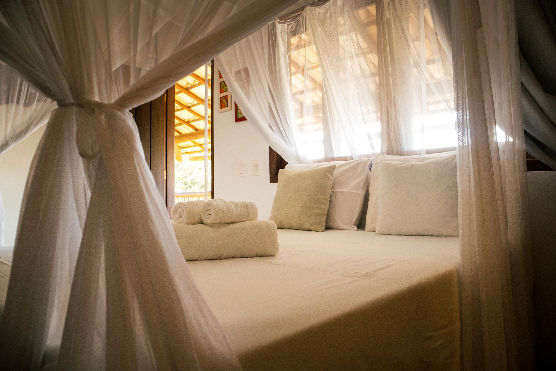Suite 4: Double bed, musketeer, air conditioning, balcony with hammock, garden view.