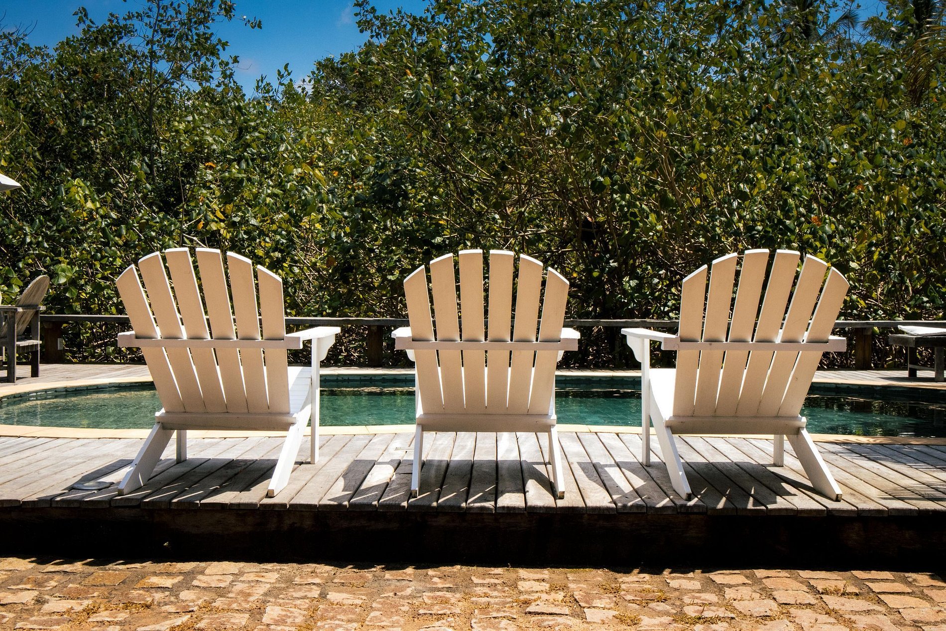 Next to the mangrove is the curved pool and an invitation to enjoy the sunny days of southern Bahia. The gourmet area and terraces around the house are more pleasant places for privileged moments with family and friends.